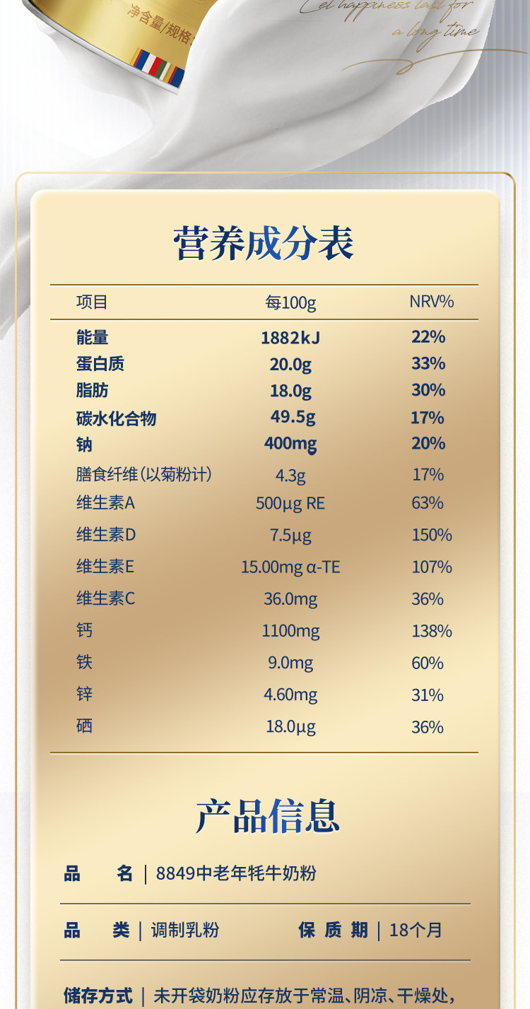 天赋5原 8849中老年牦牛奶粉400g