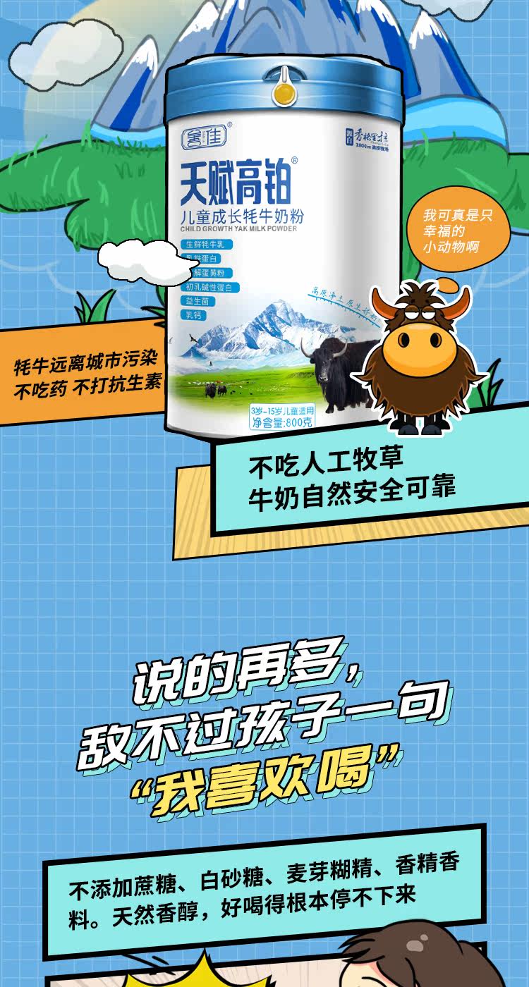 天赋5原 高铂儿童成长牦牛奶粉800g