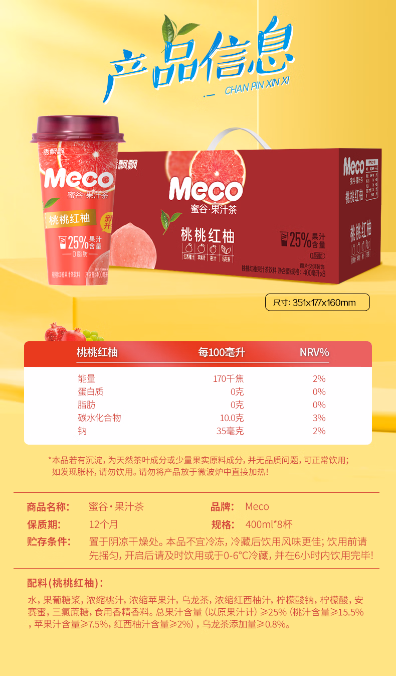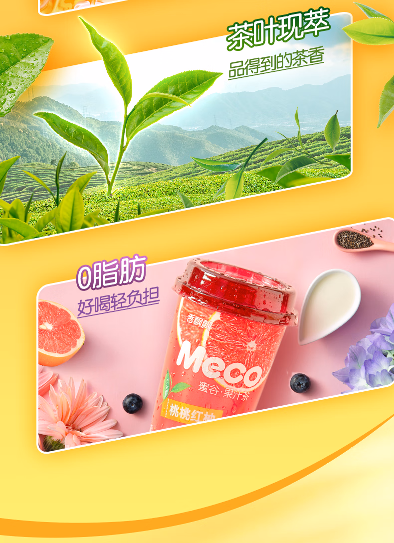 香飘飘奶茶 新升级Meco蜜谷果汁茶 桃桃红柚口味400ml 15杯