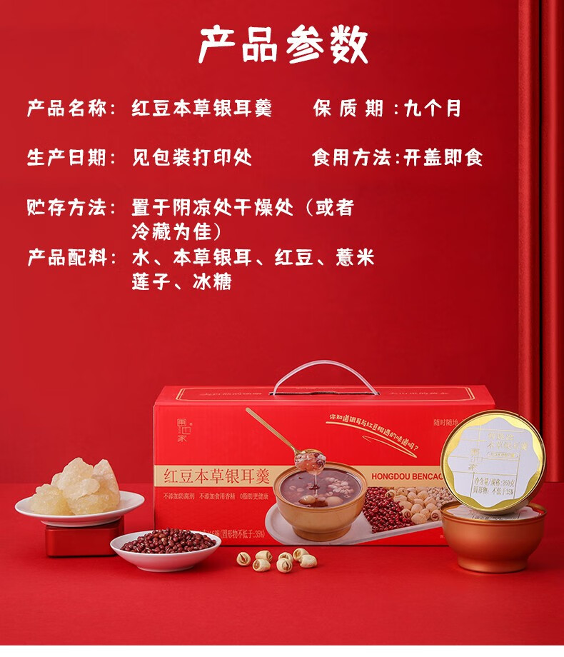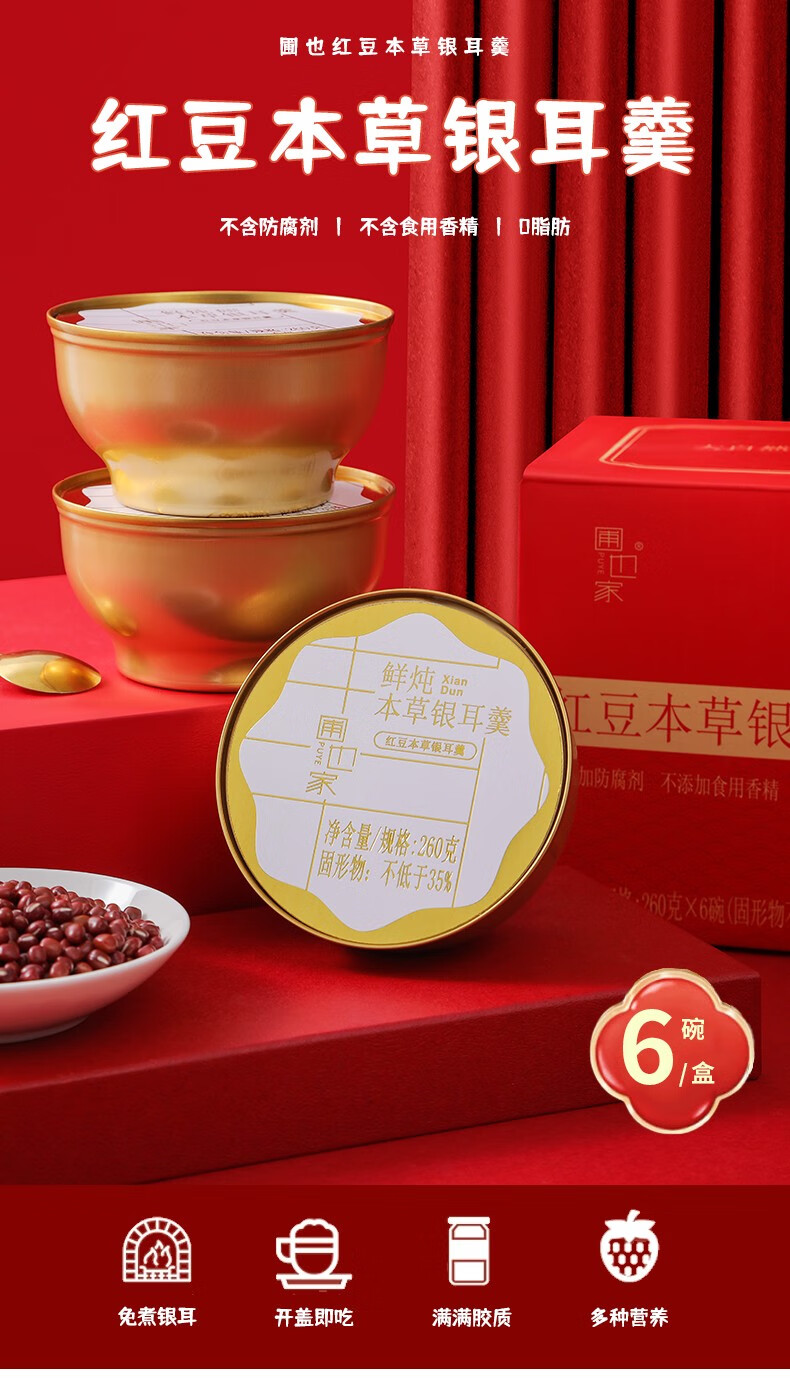 圃也(PUYE)圃也家红豆本草鲜炖银耳羹260g*6罐(1560g)