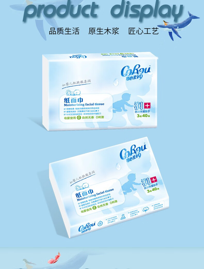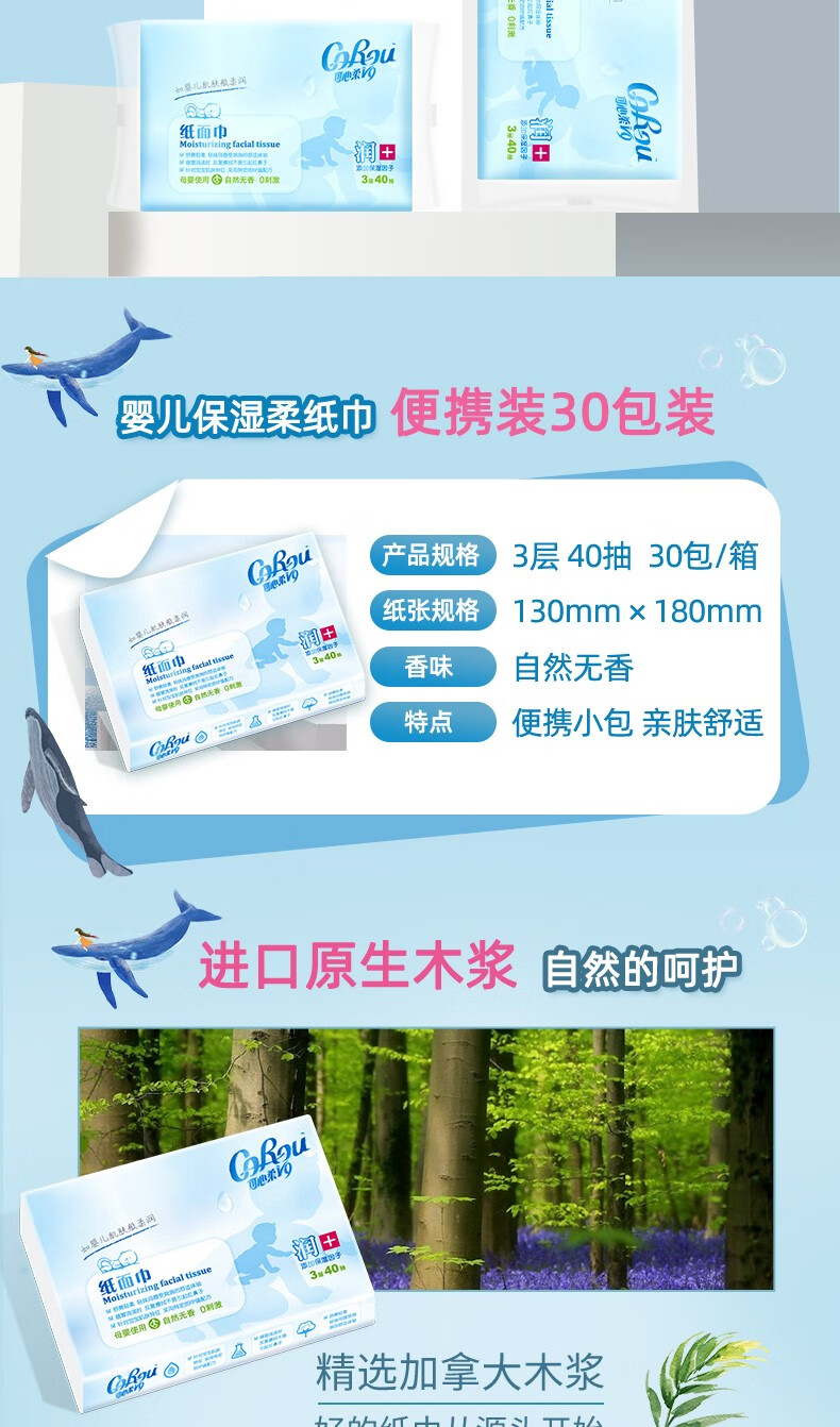 可心柔(COROU)可心柔V9保湿抽纸便携式外出3层40抽30包婴儿纸巾柔纸巾整箱量贩