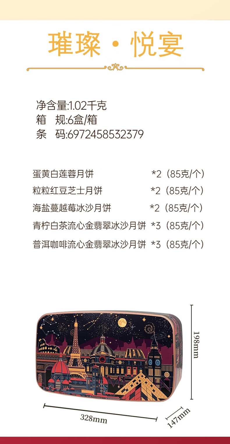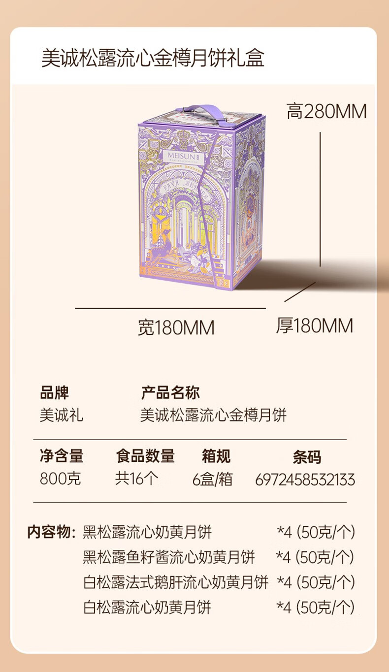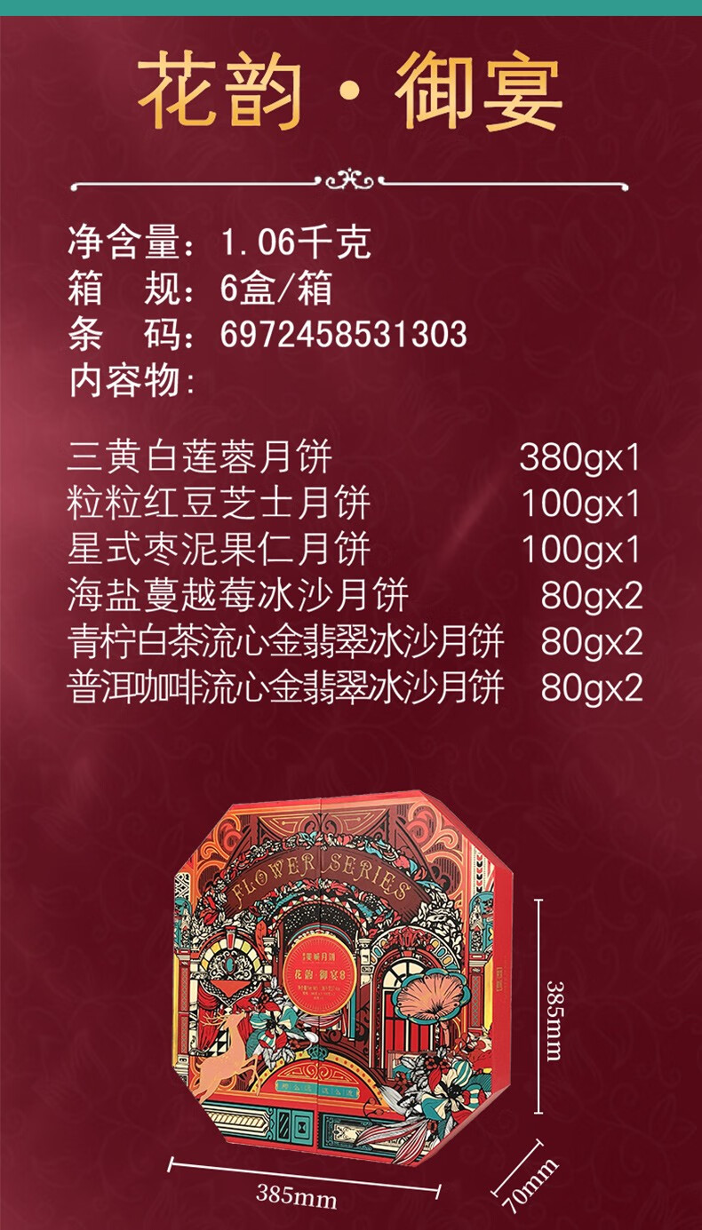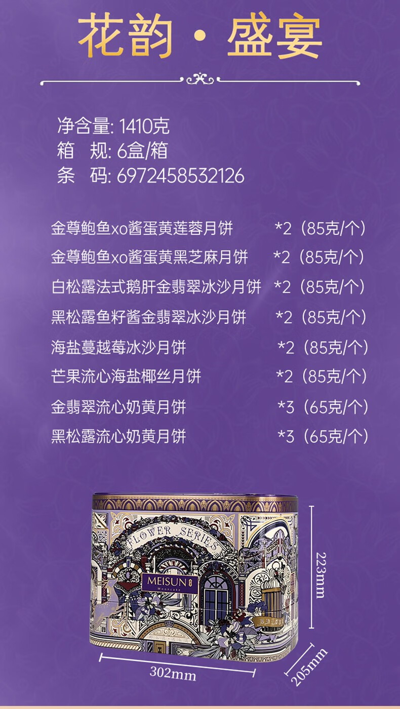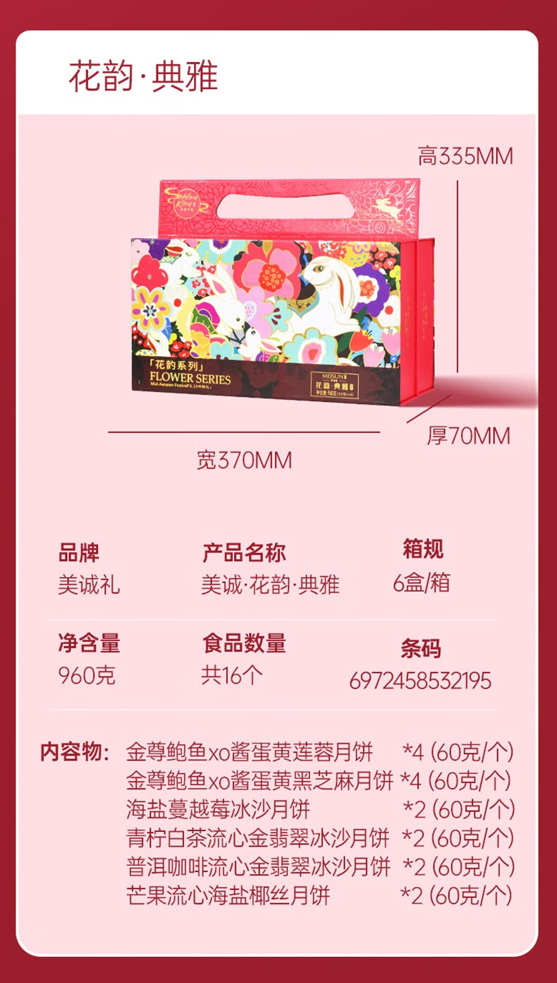 美诚礼月饼礼盒装港式广式蛋黄莲蓉多口味月饼 花韵·典雅960g