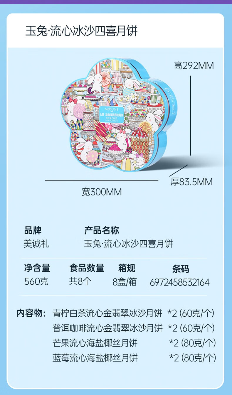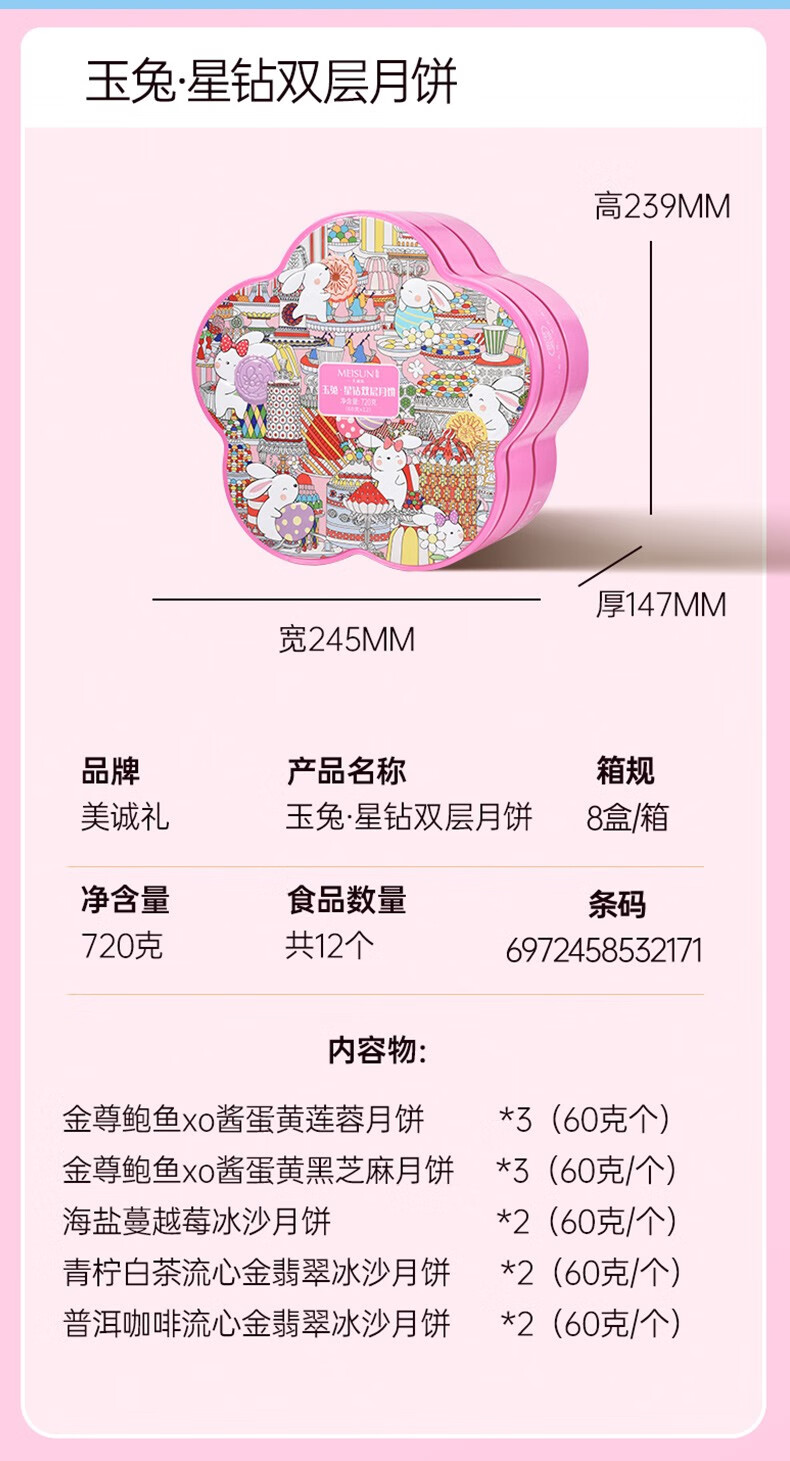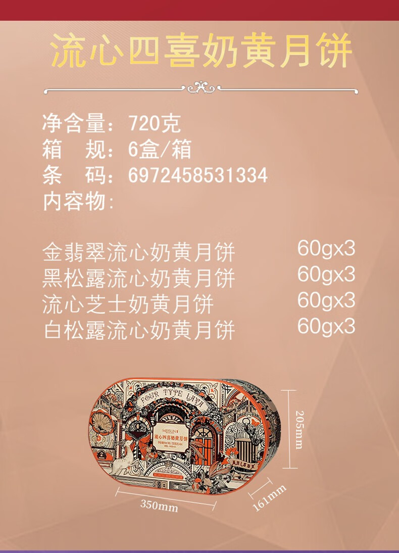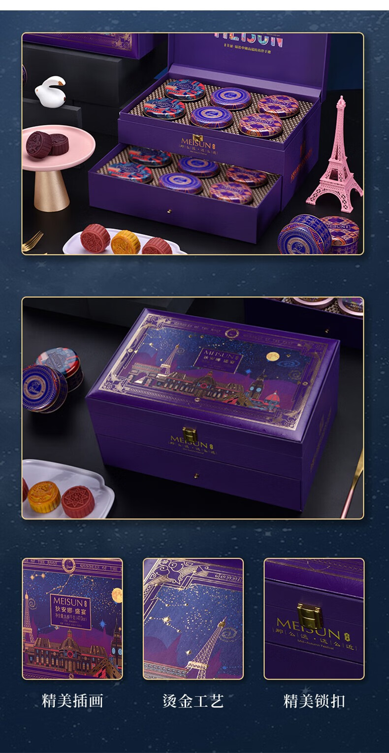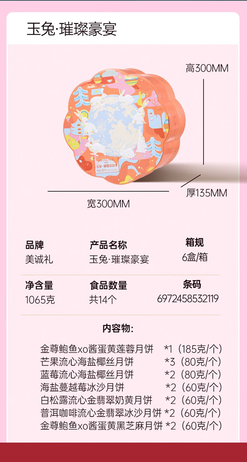 美诚礼月饼礼盒装港式广式蛋黄莲蓉多口味月饼 花韵·典雅960g