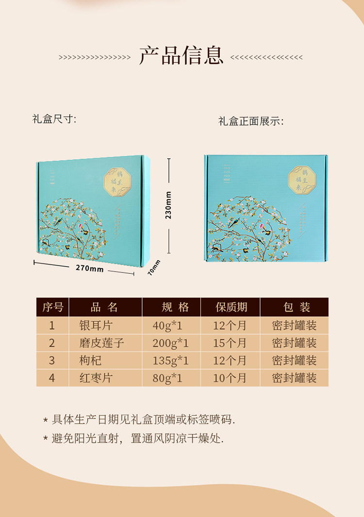 姚朵朵鹊至福来干货礼盒455g 节庆送礼大礼包银耳莲子红枣枸杞羹
