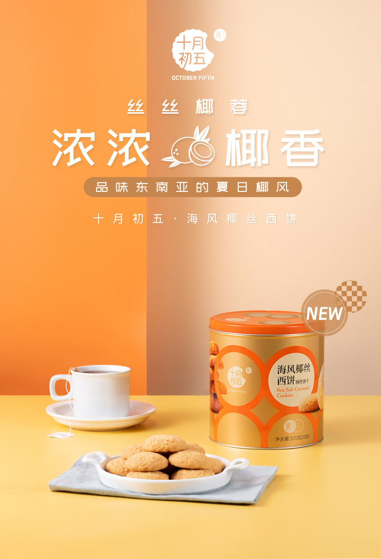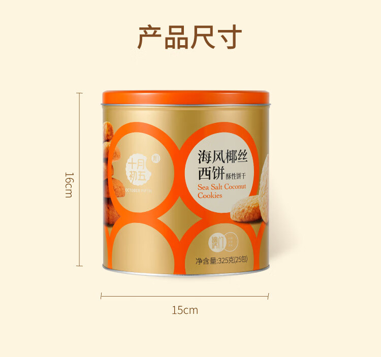 十月初五(OCTOBER FIFTH)海风椰丝西饼铁罐椰子味小包零食解馋下午茶 海风椰丝西饼325g