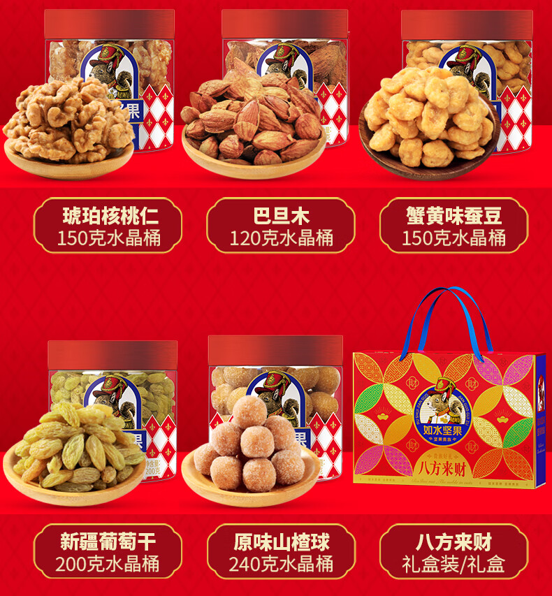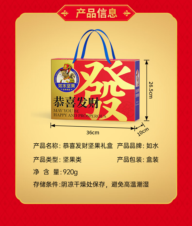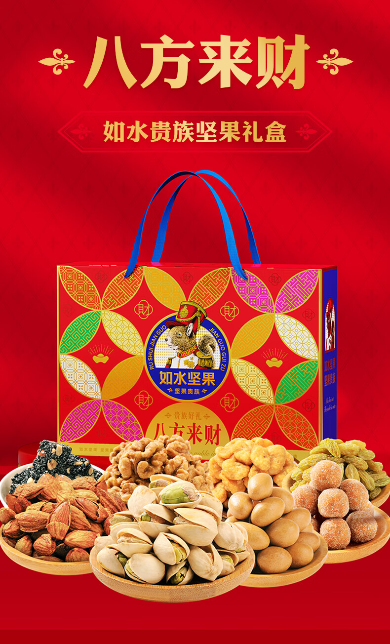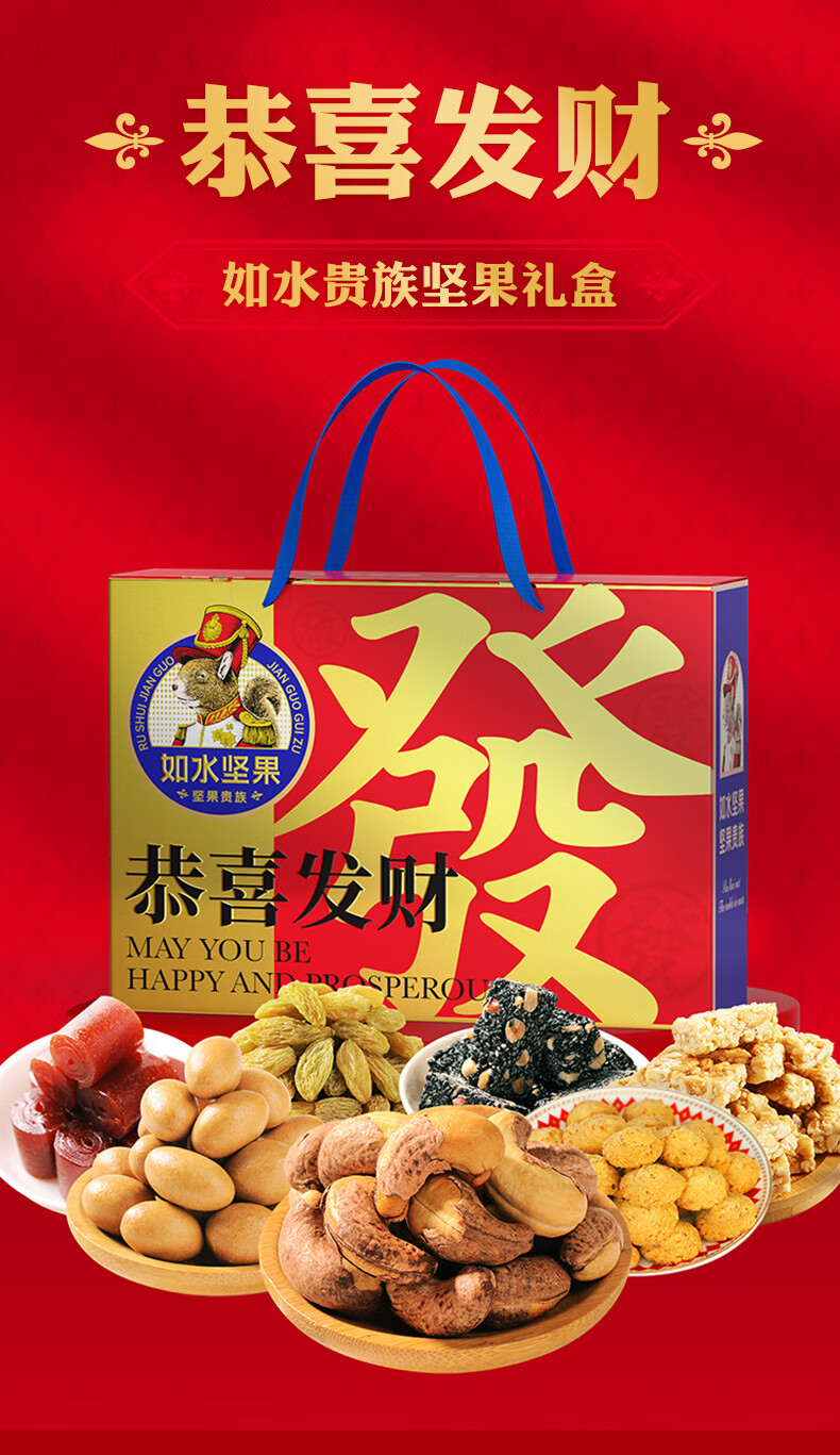 如水贵族坚果礼盒 高档节日干果蜜饯礼盒 年货礼品 恭喜发财920g/8袋装