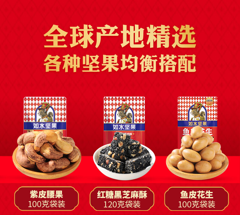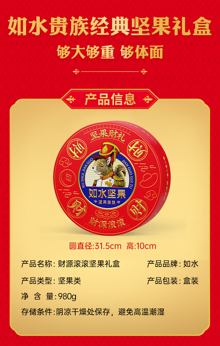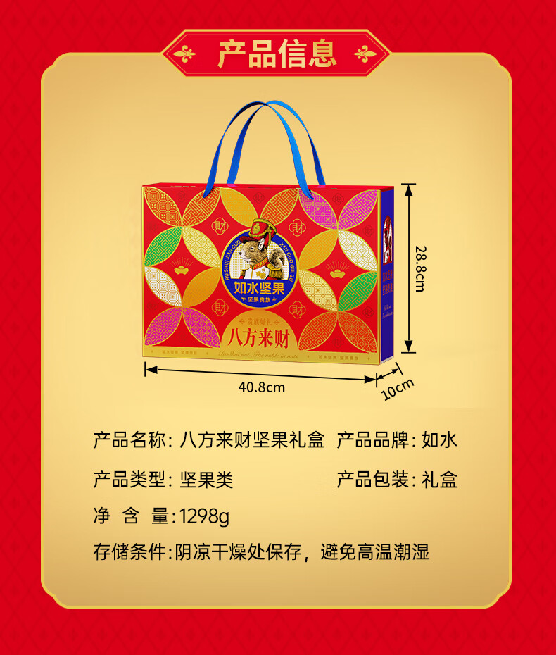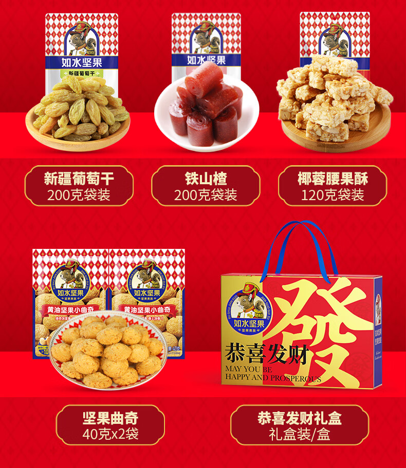 如水贵族坚果礼盒 高档节日干果蜜饯礼盒 年货礼品 恭喜发财920g/8袋装