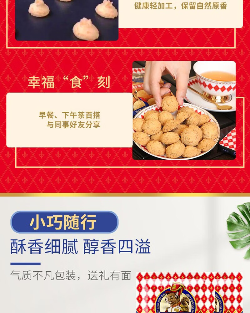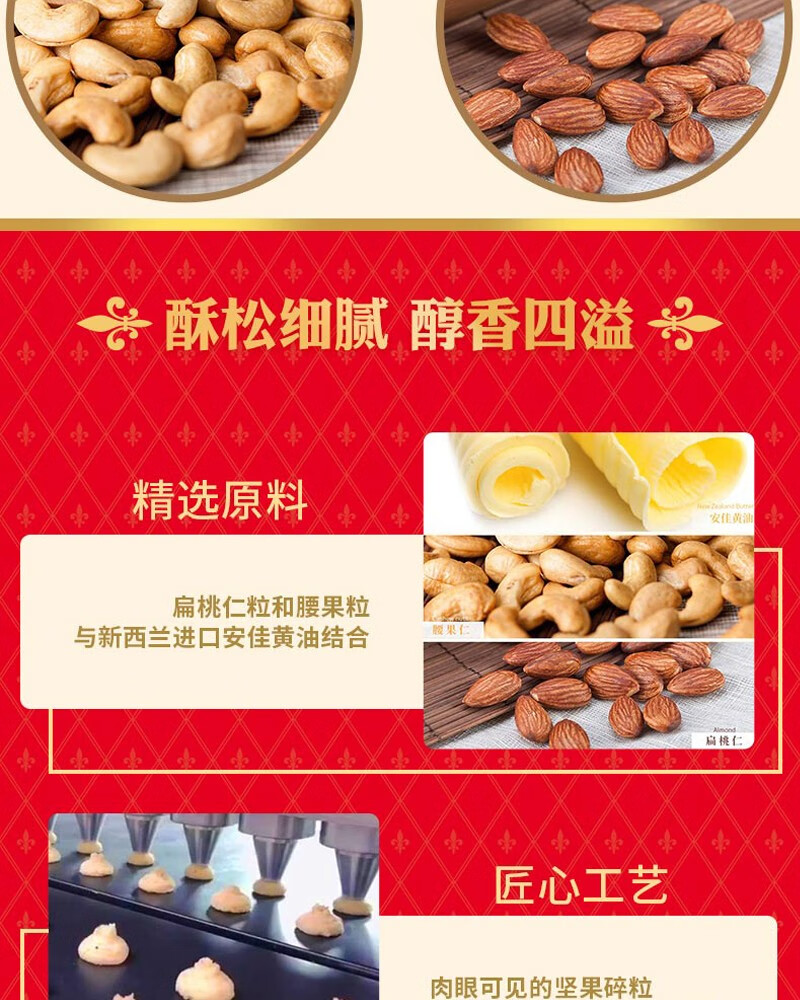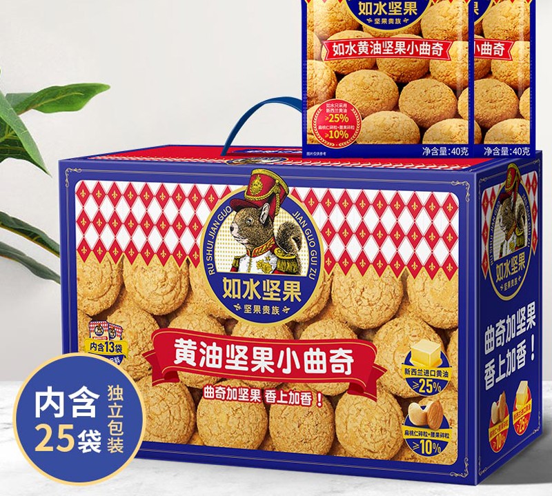 如水黄油坚果曲奇1000g礼盒装酥脆果仁小饼干袋装零食送礼大礼包