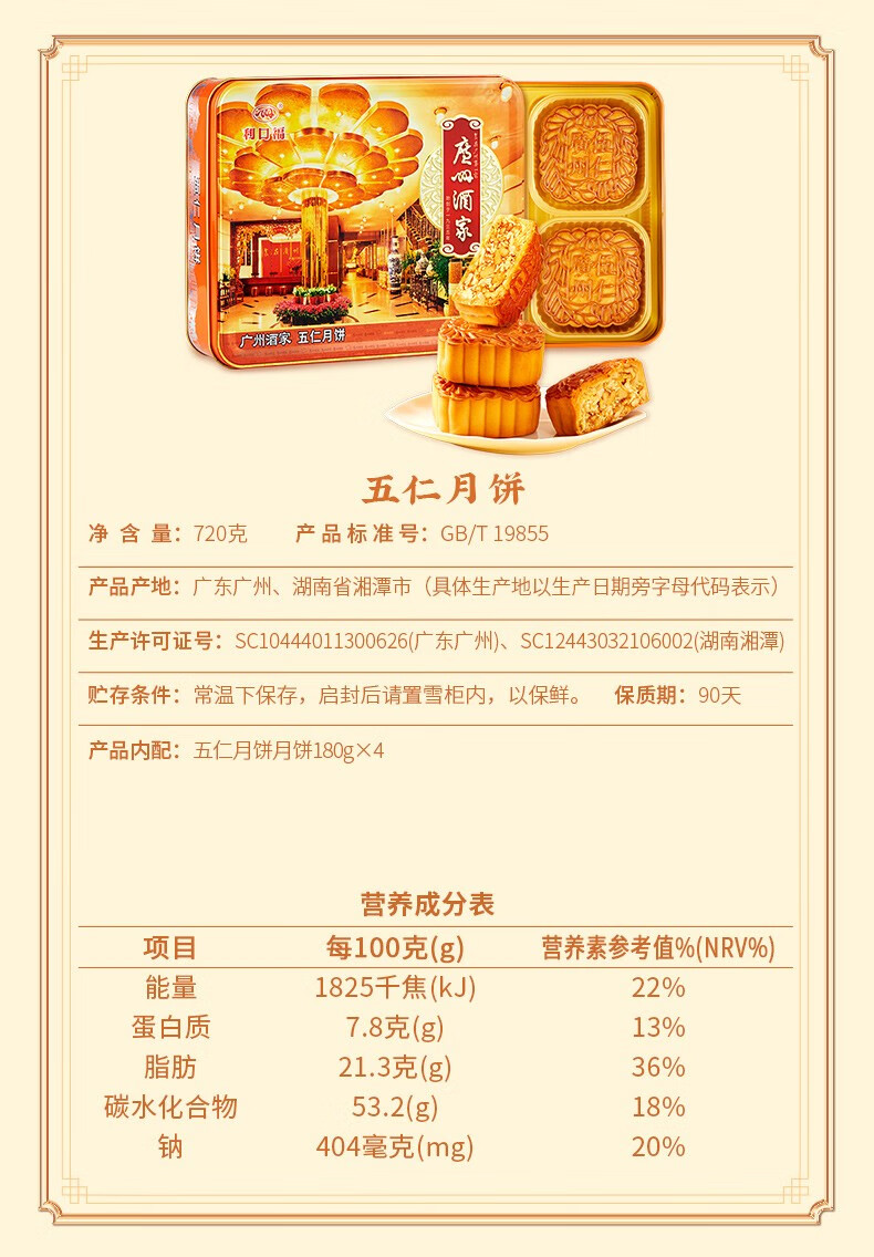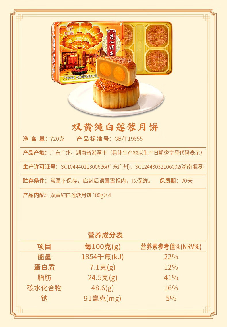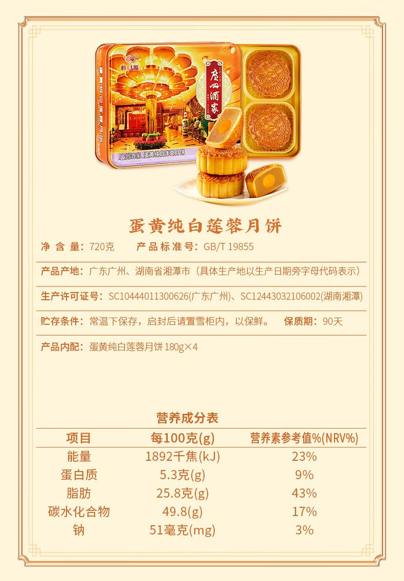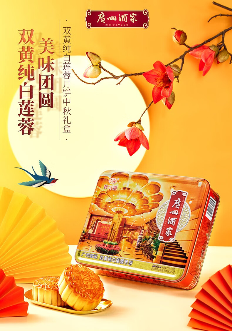广州酒家 月饼礼盒 中华老字号广式月饼 双黄纯白莲蓉月饼礼盒720g