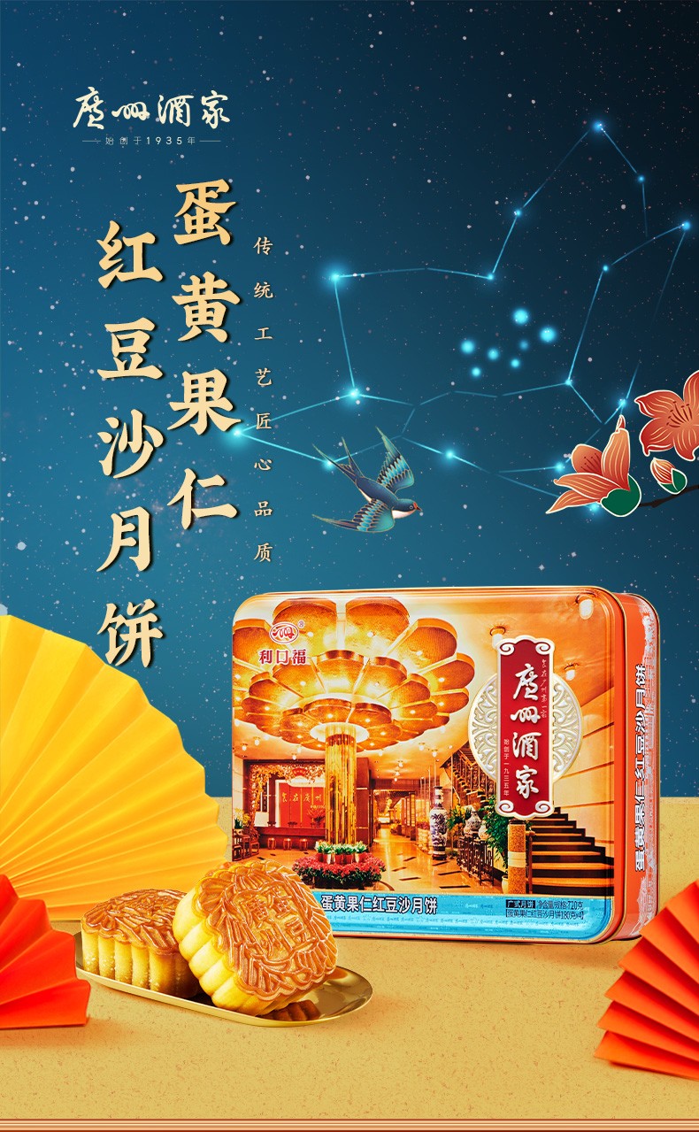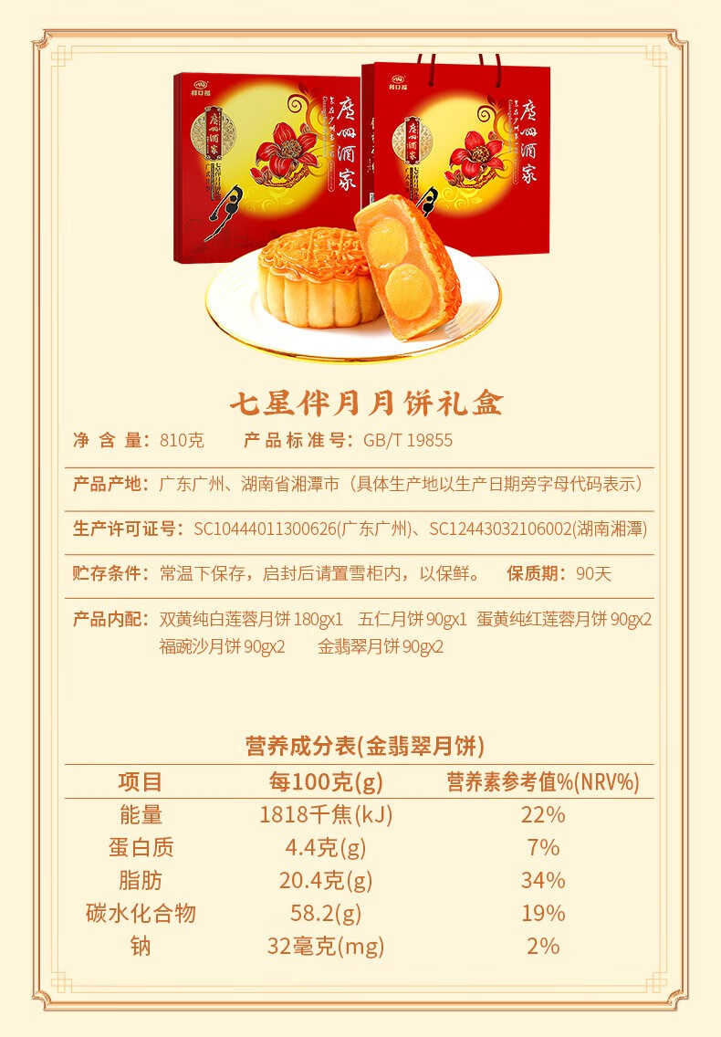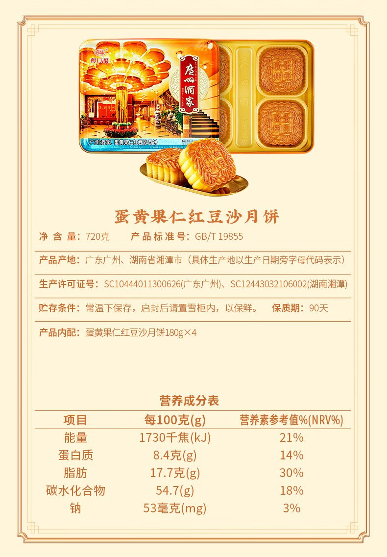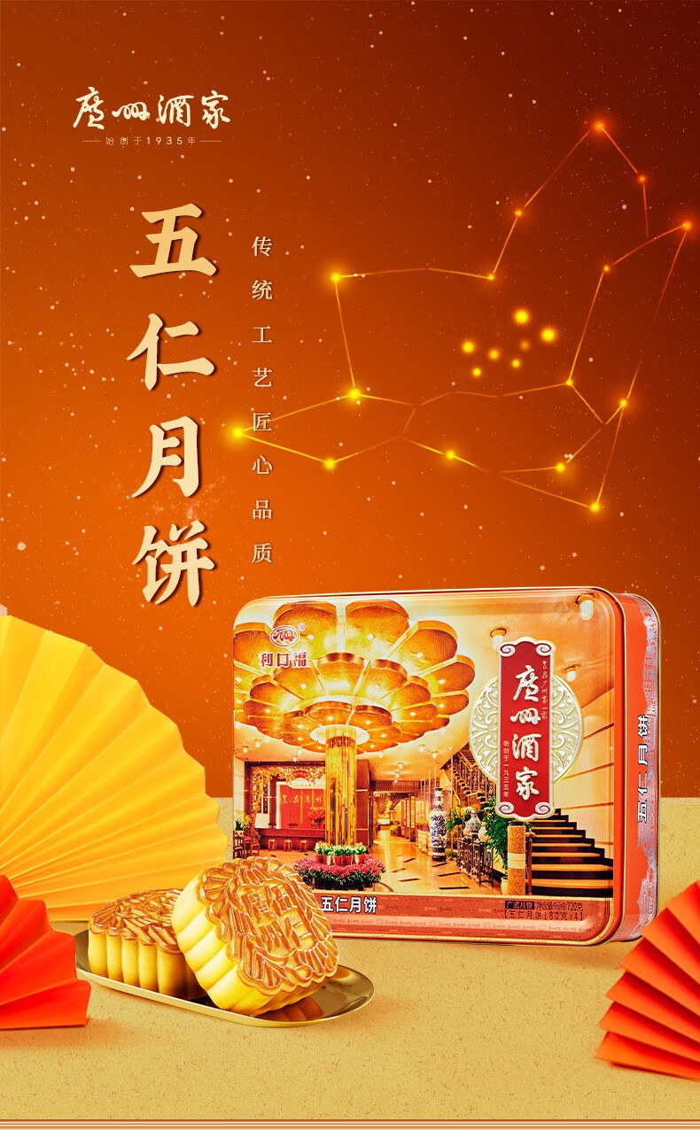 广州酒家 月饼礼盒 中华老字号广式月饼 双黄纯白莲蓉月饼礼盒720g
