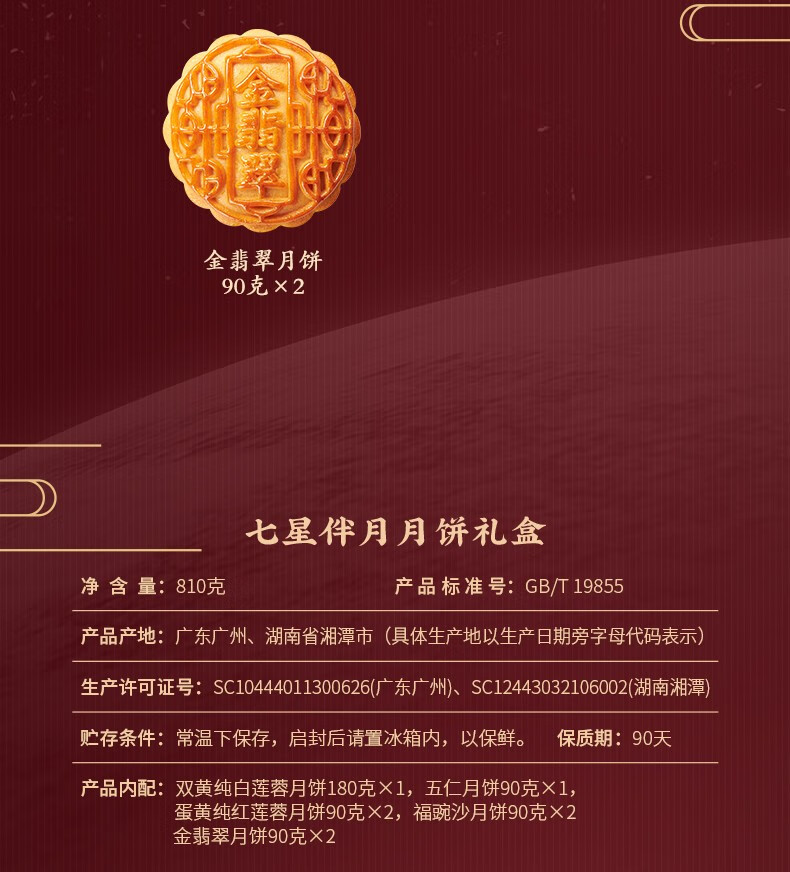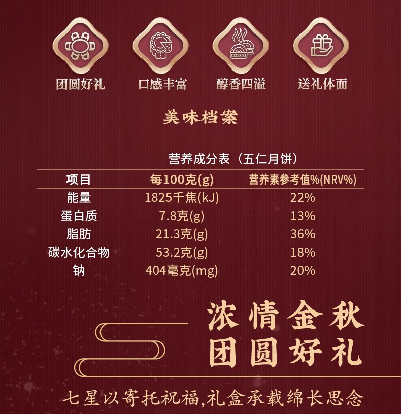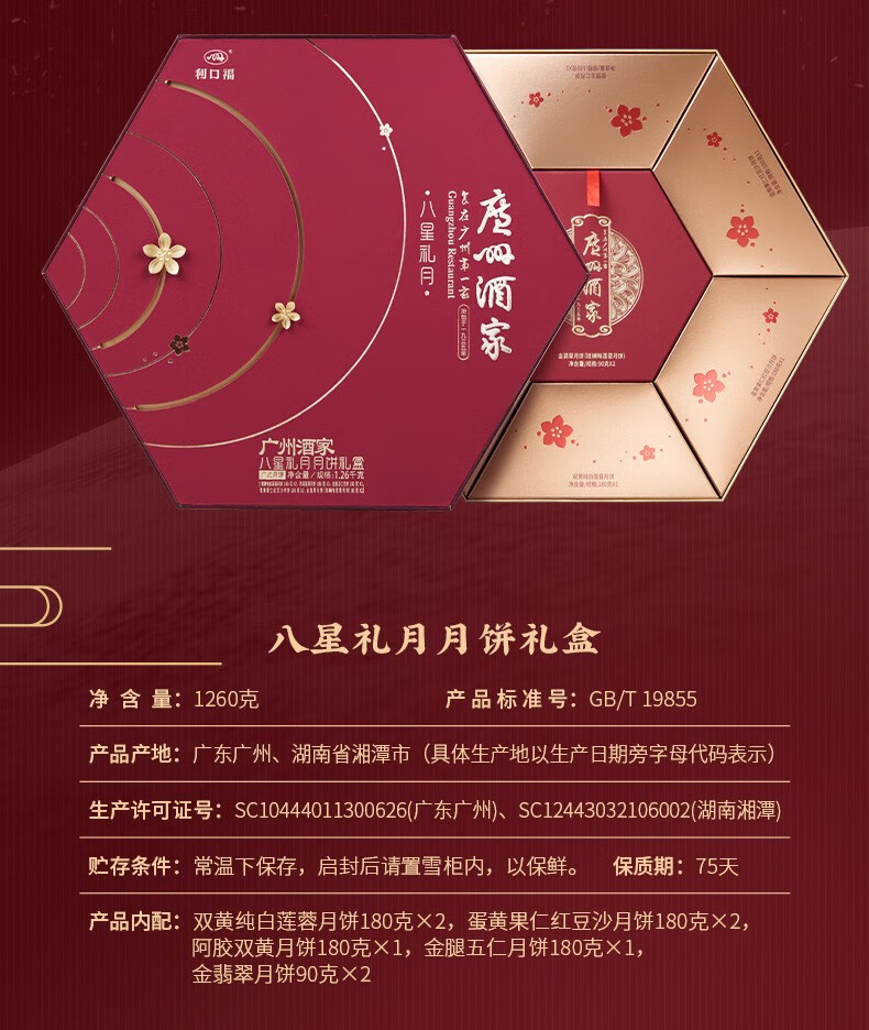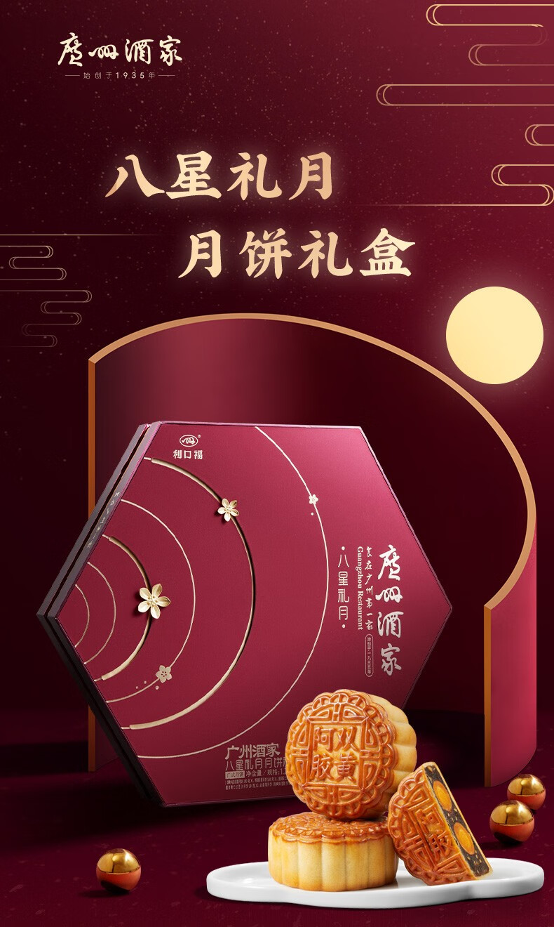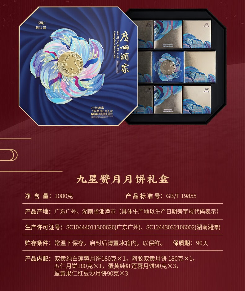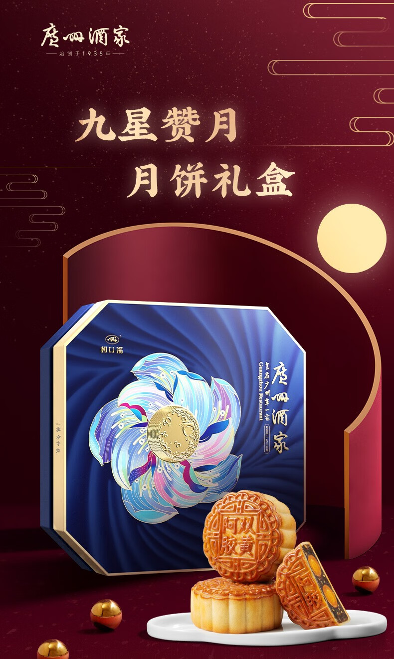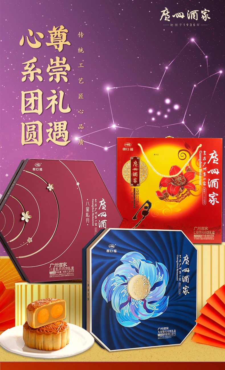 广州酒家 月饼礼盒 中华老字号广式月饼 七星伴月月饼礼盒810g