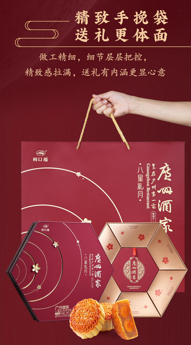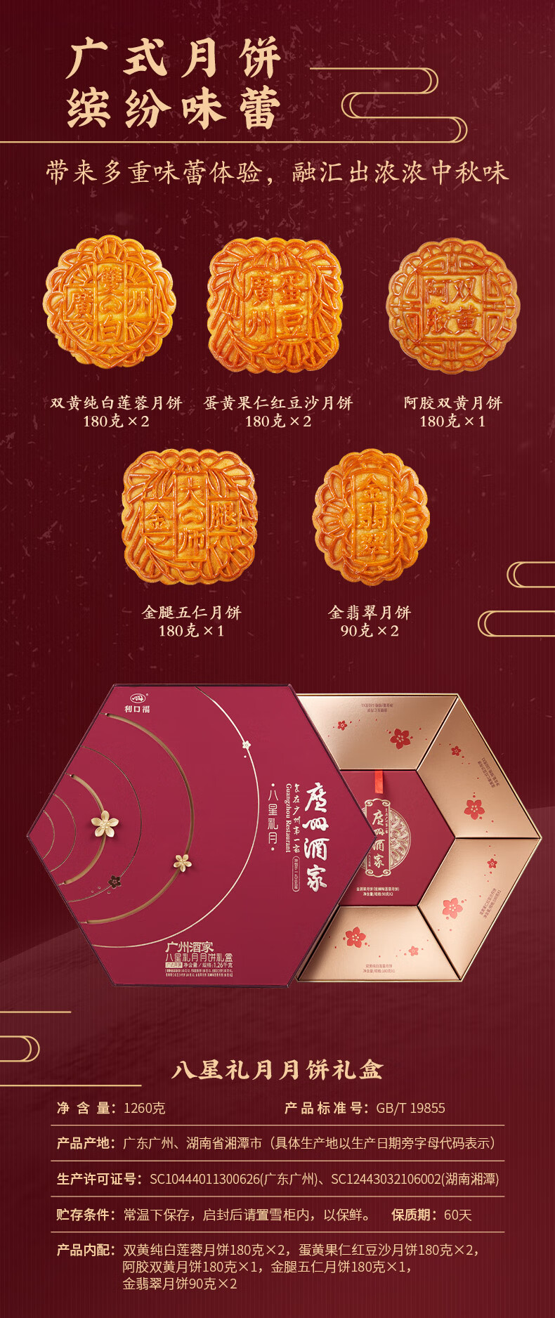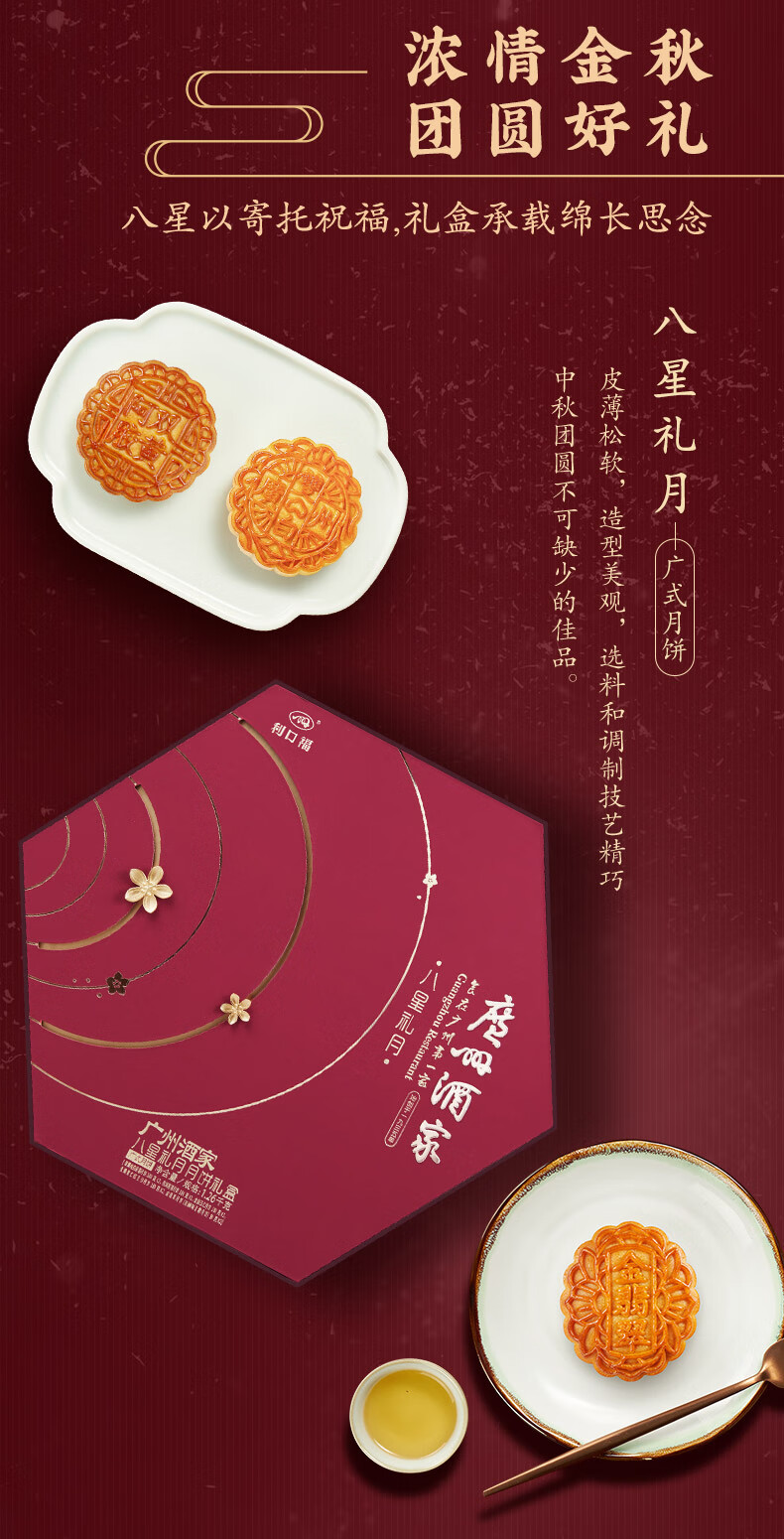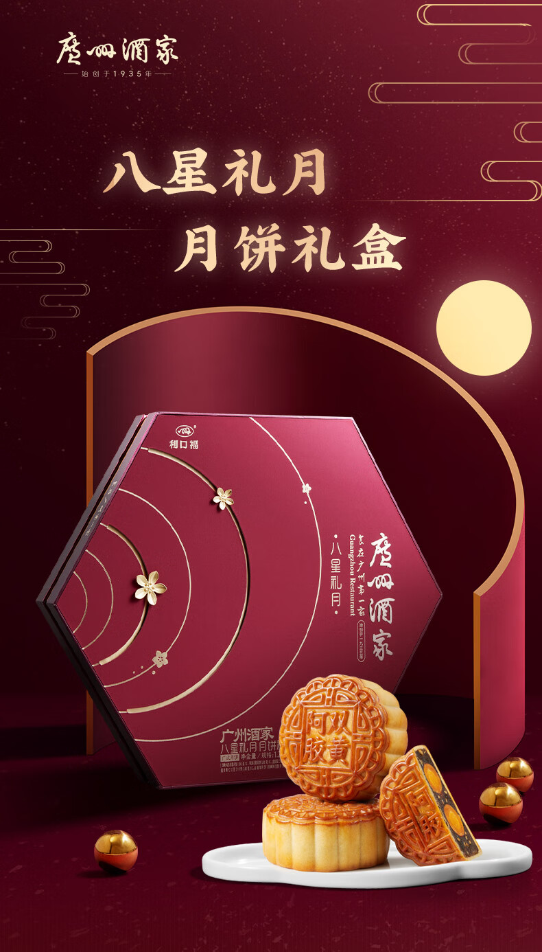 广州酒家八星礼月月饼礼盒广式利口福蛋黄白莲蓉金腿五仁豆沙传统中秋月饼 广州酒家八星礼月礼盒 1260g