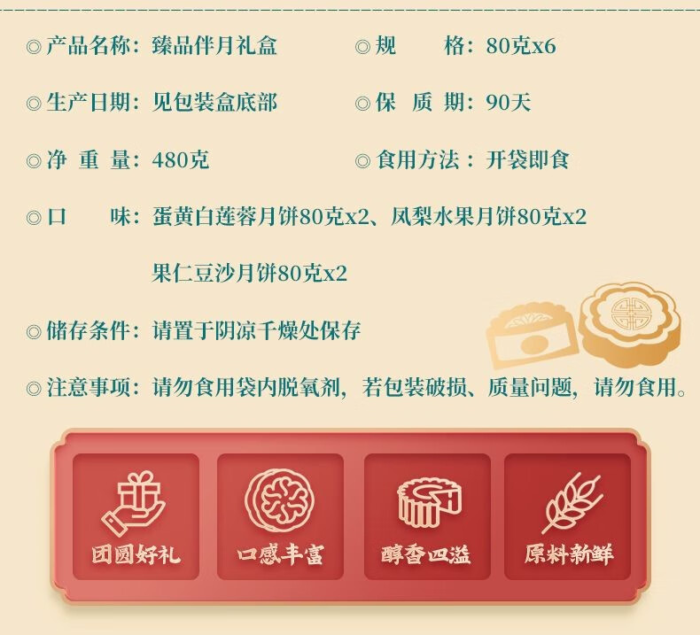 陶陶居月饼礼盒双黄白莲蓉流心奶黄豆沙五仁蛋黄月饼广式月饼中秋节礼品 臻品伴月礼盒480g