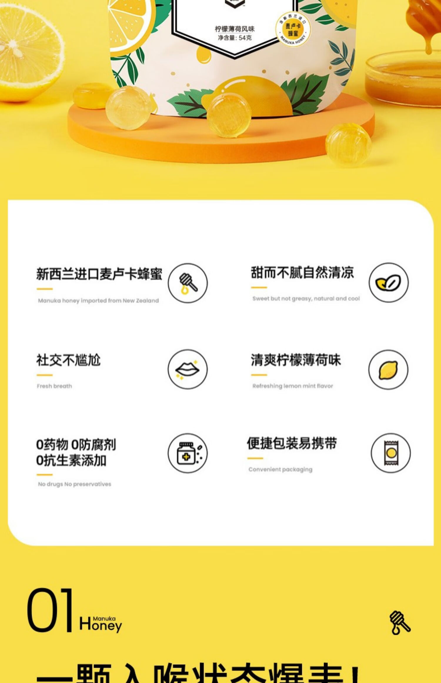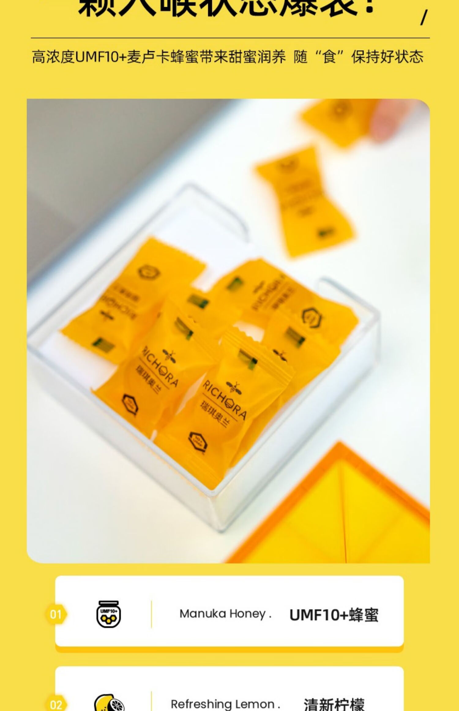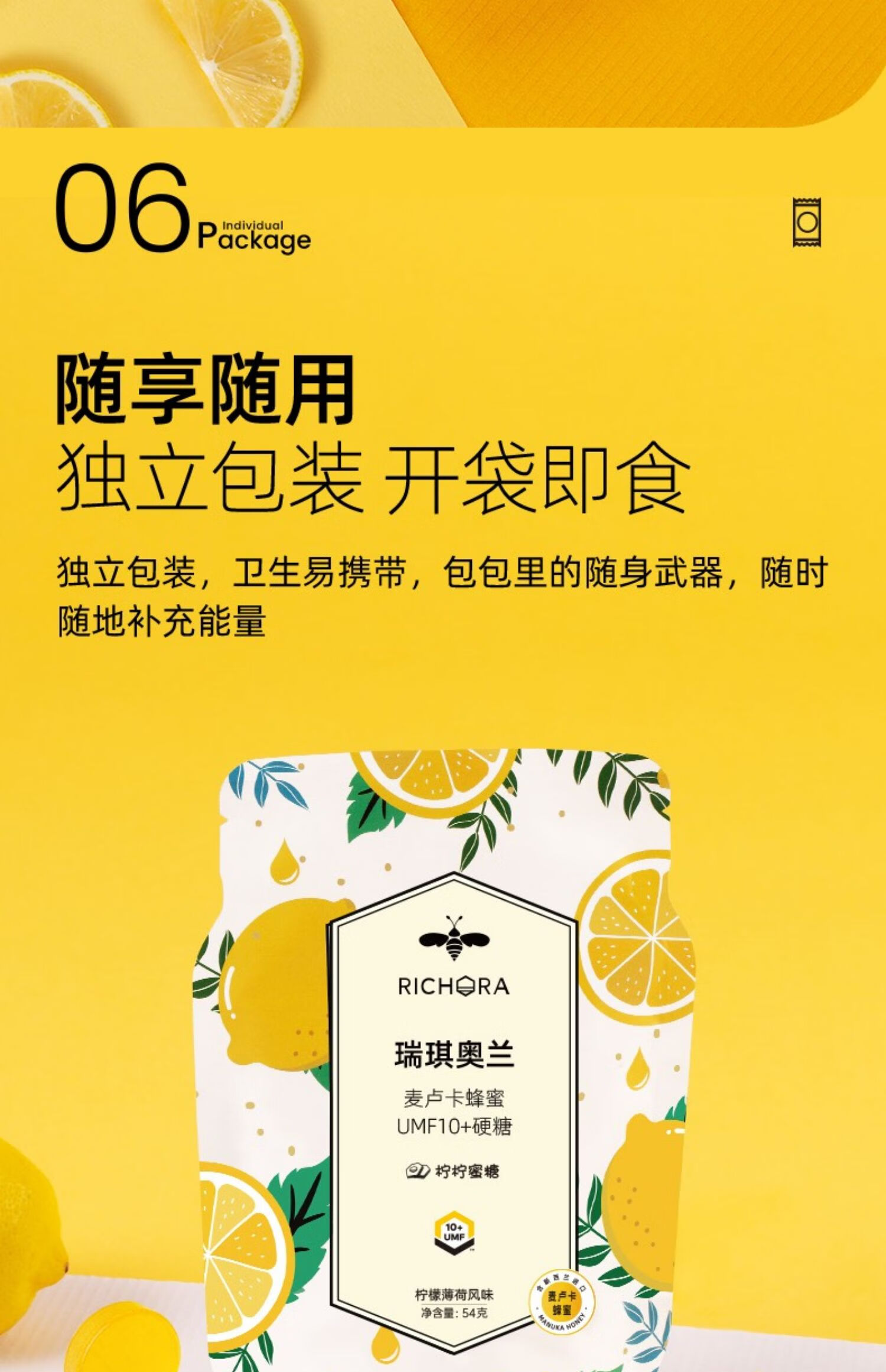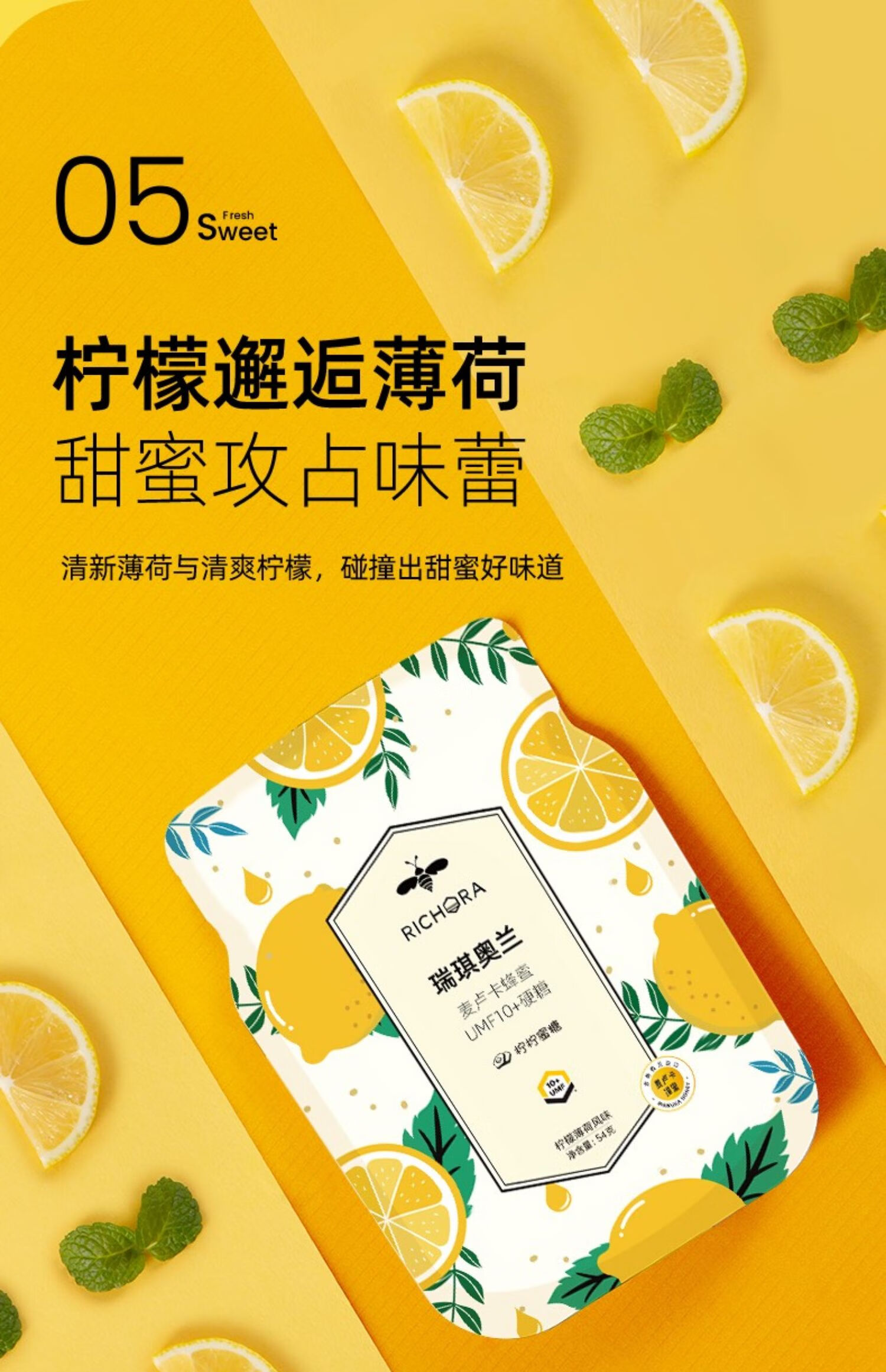 瑞琪奥兰麦卢卡花蜂蜜UMF10+硬糖柠檬薄荷蜜糖清新润喉护嗓 1袋