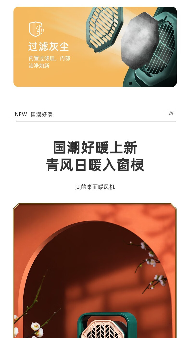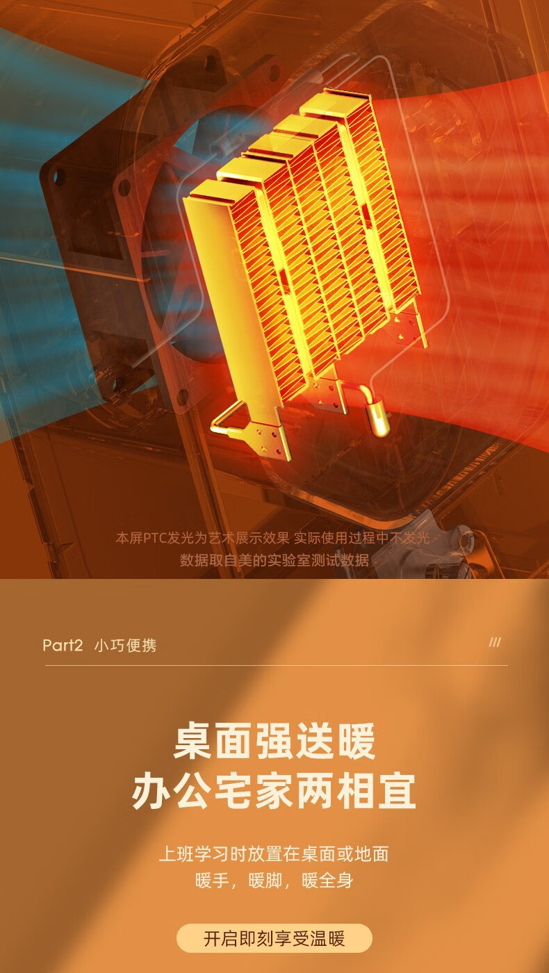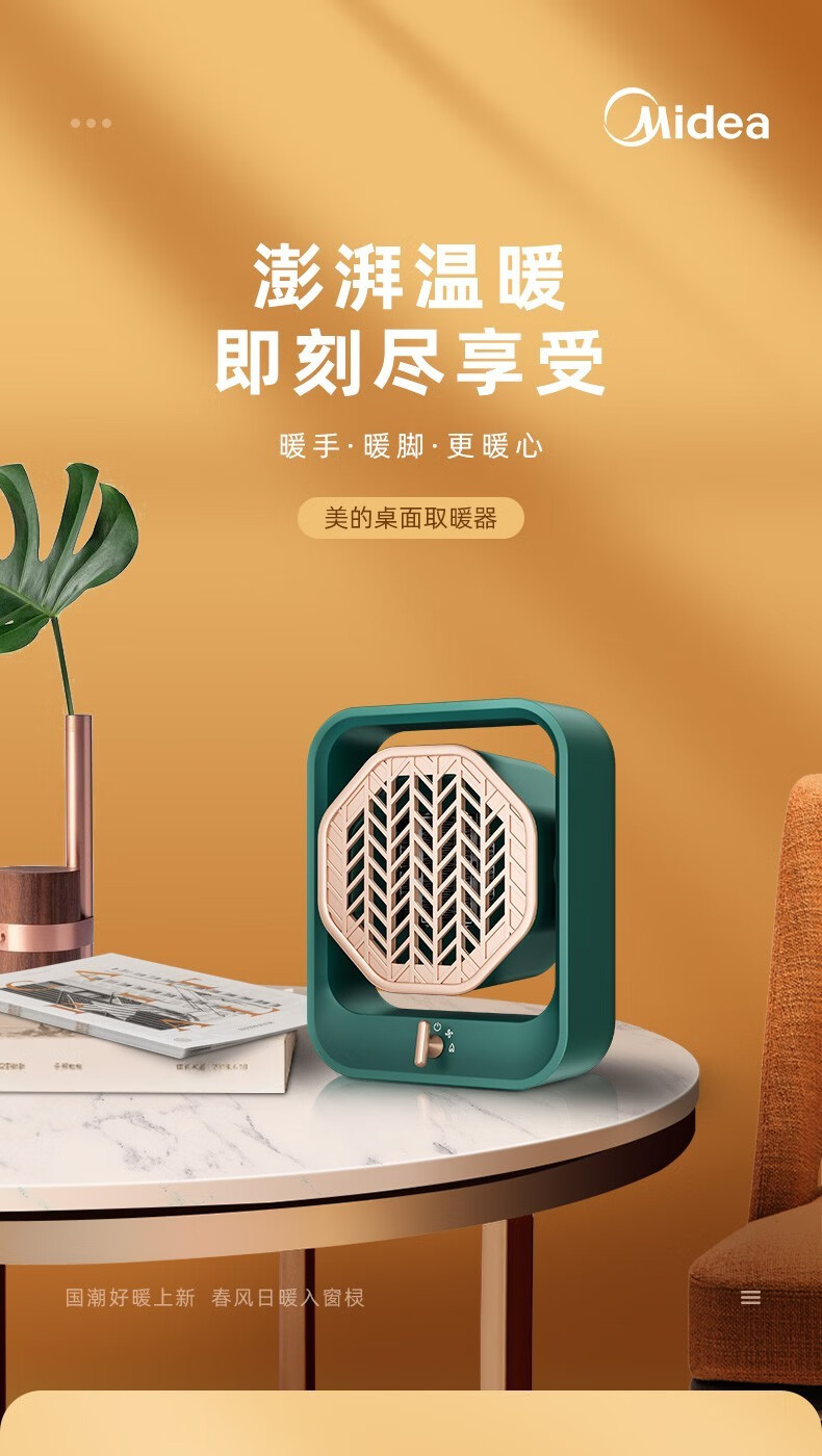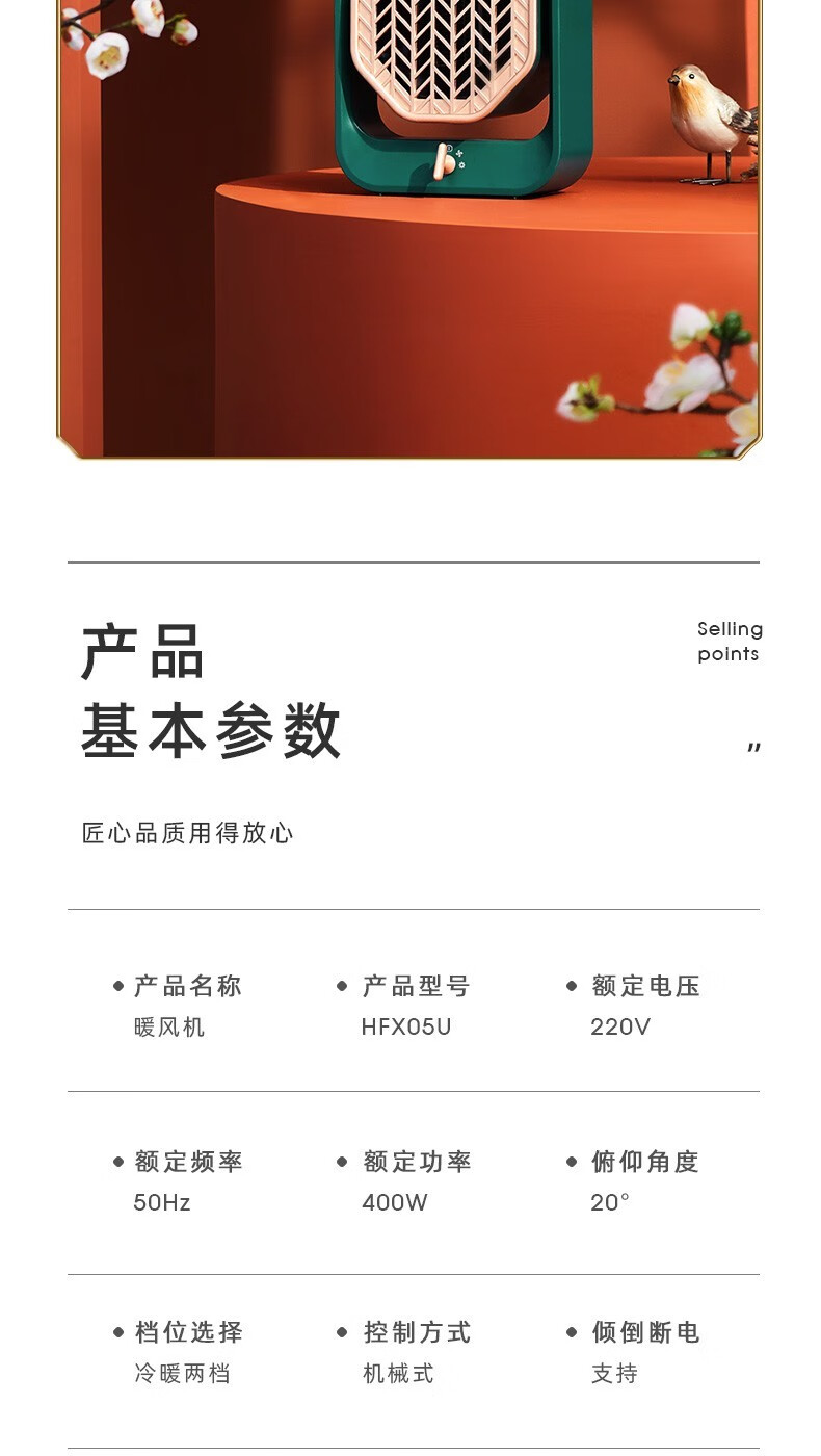 美的(Midea)取暖器 桌面小型热风机便携冷暖两用电暖器 HFX05U
