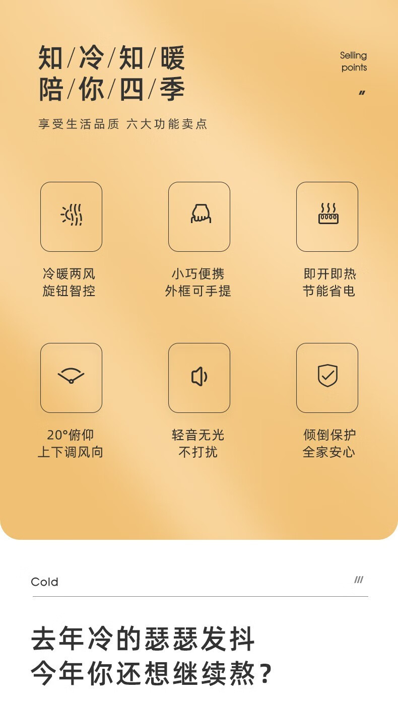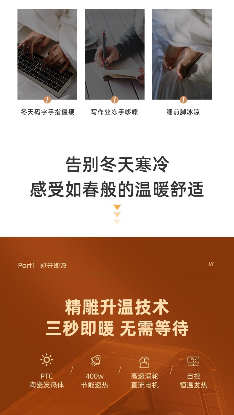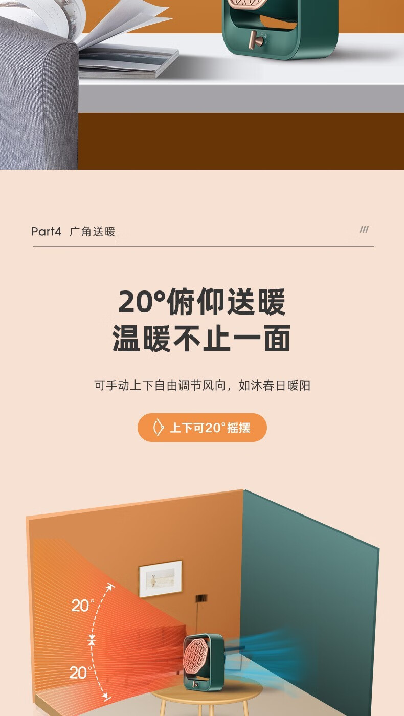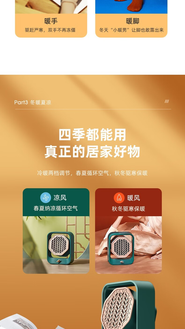美的(Midea)取暖器 桌面小型热风机便携冷暖两用电暖器 HFX05U