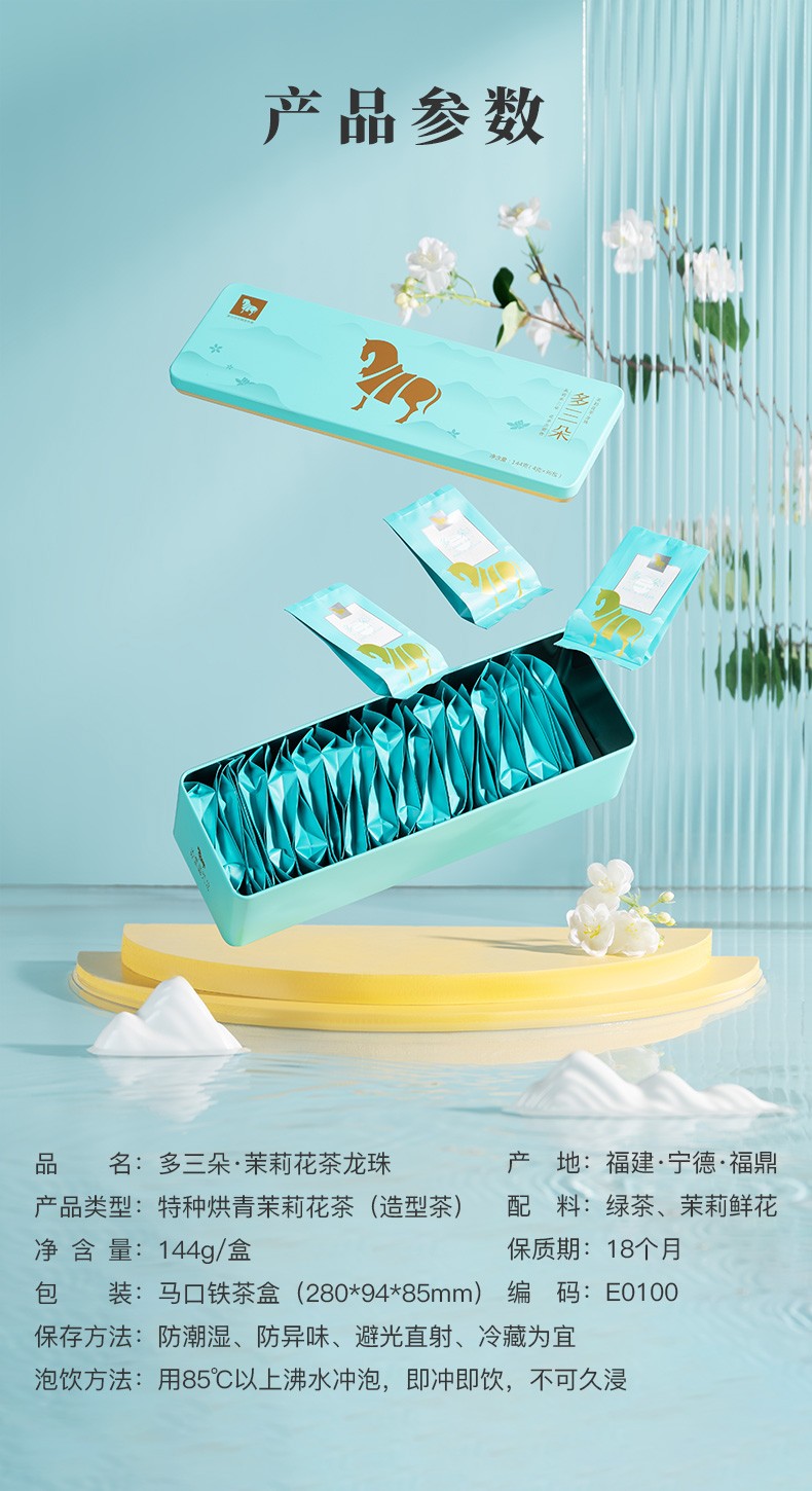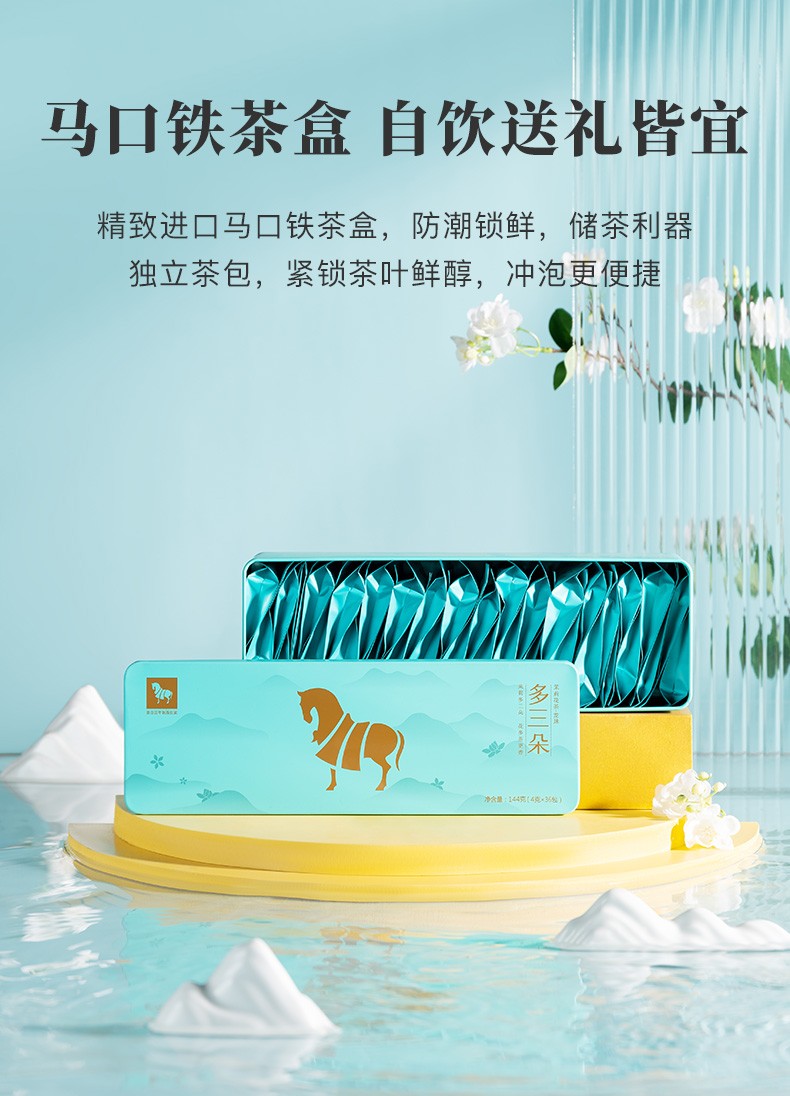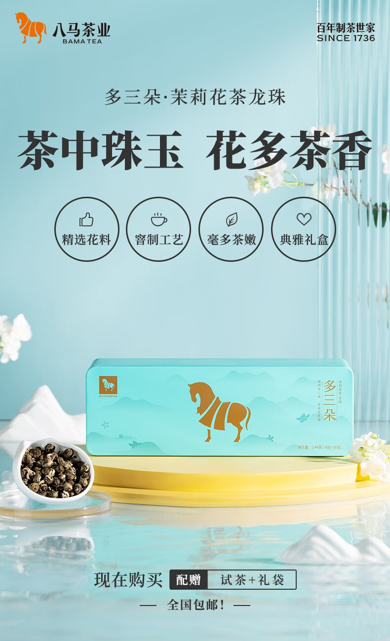 八马茶业 茉莉花茶龙珠花草茶多三朵盒装144g