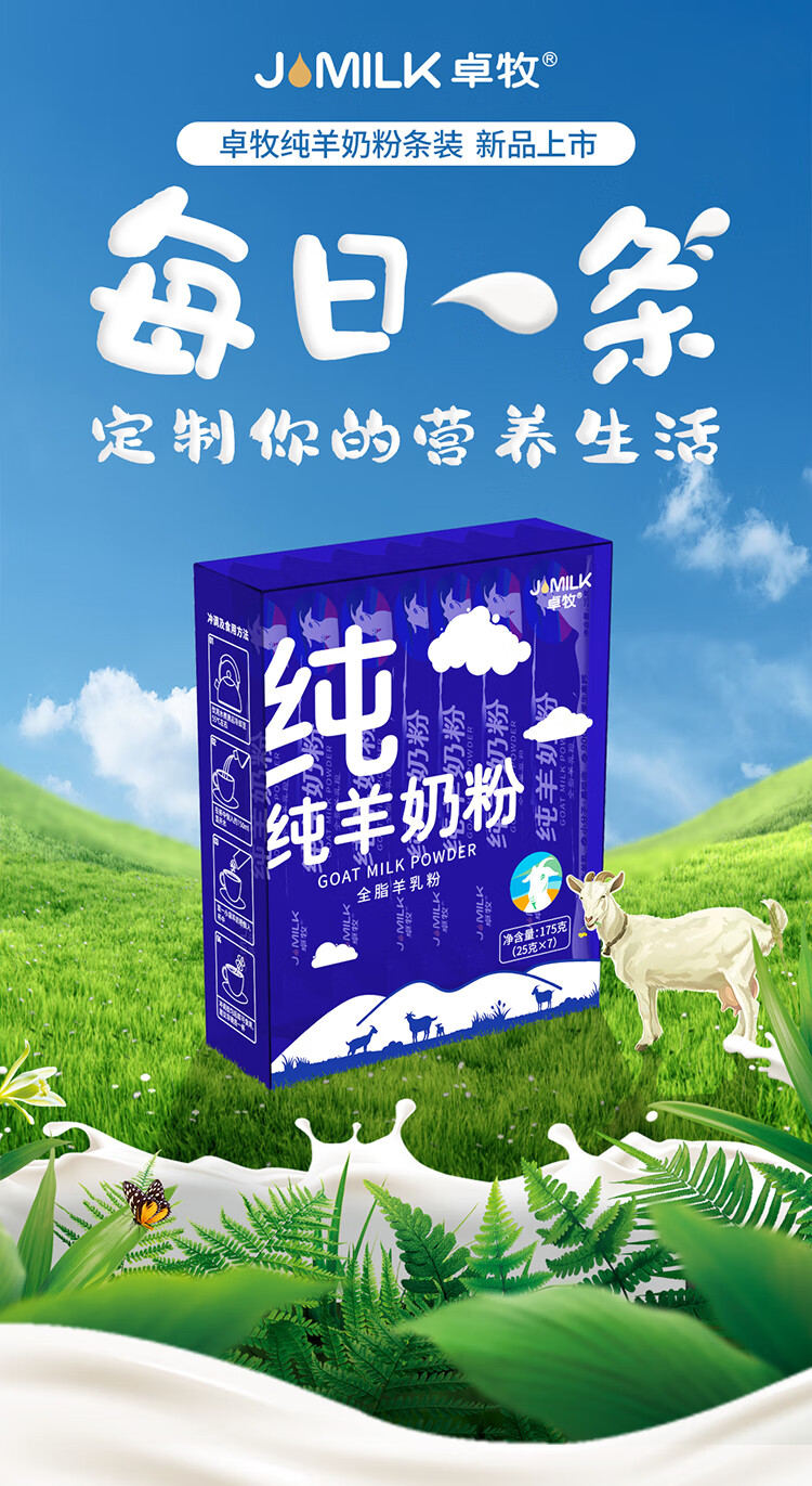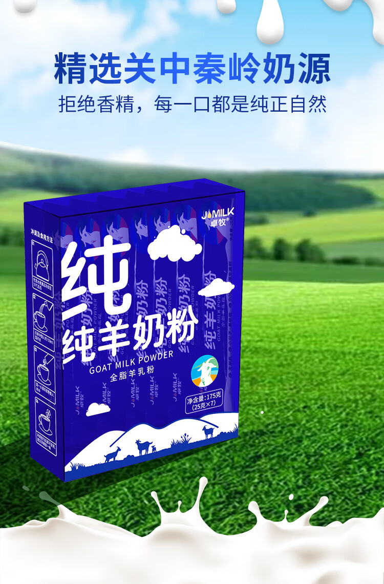 卓牧 高钙高蛋白纯羊奶粉 小蓝盒便携独立包装25g/袋 1盒175g