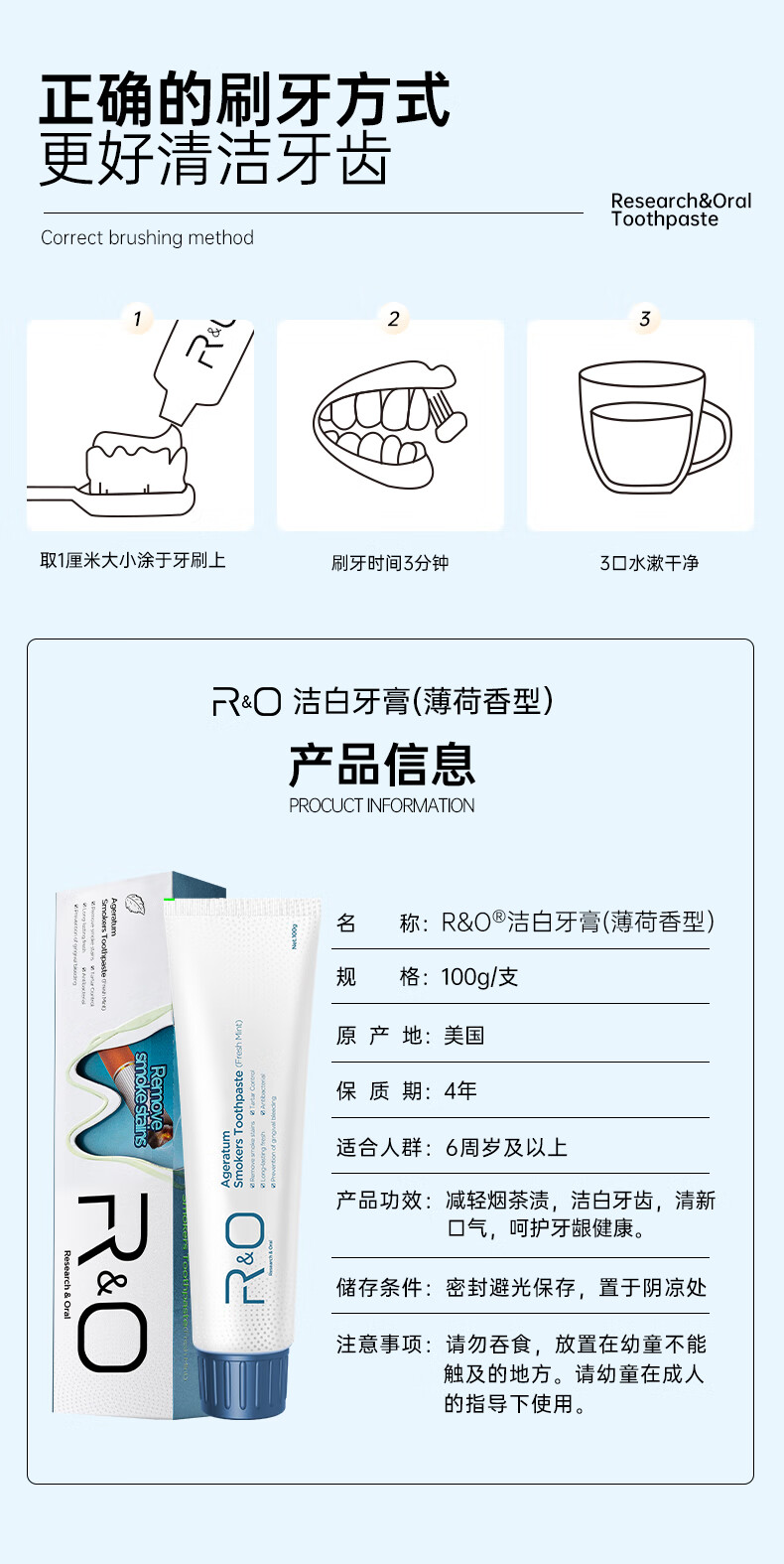 R&O 洁白牙膏100g深层洁净 去烟渍牙垢 焕白亮齿 防蛀牙