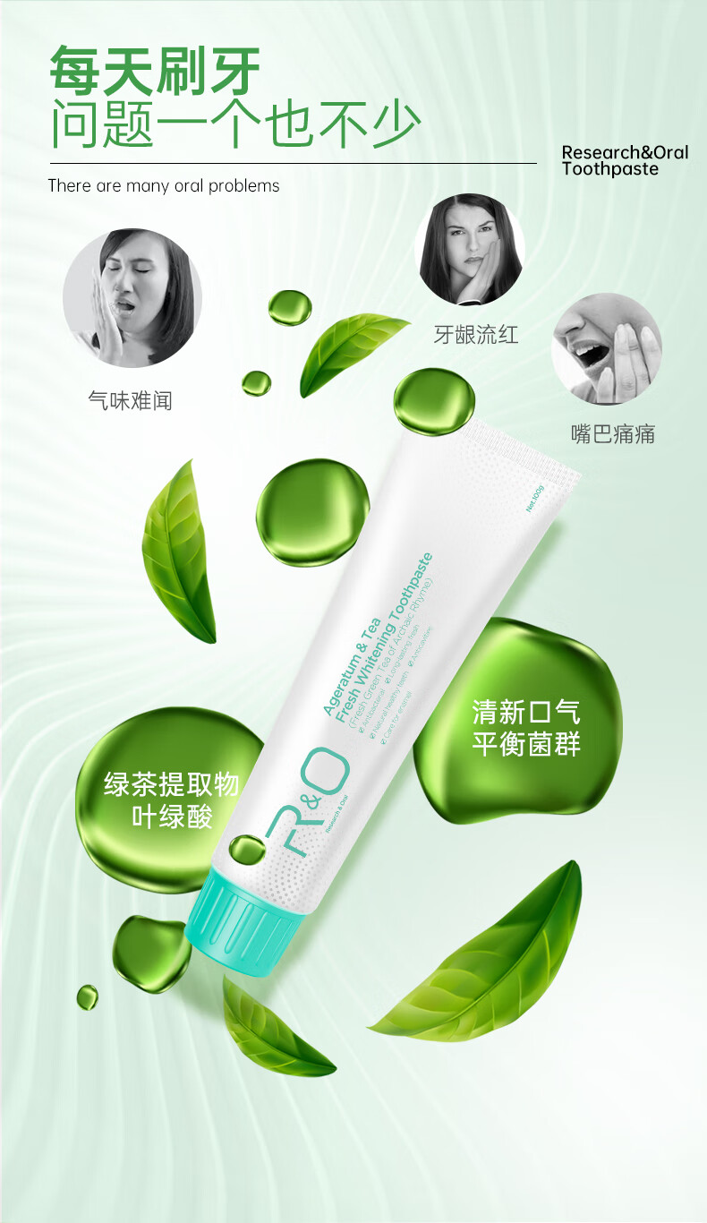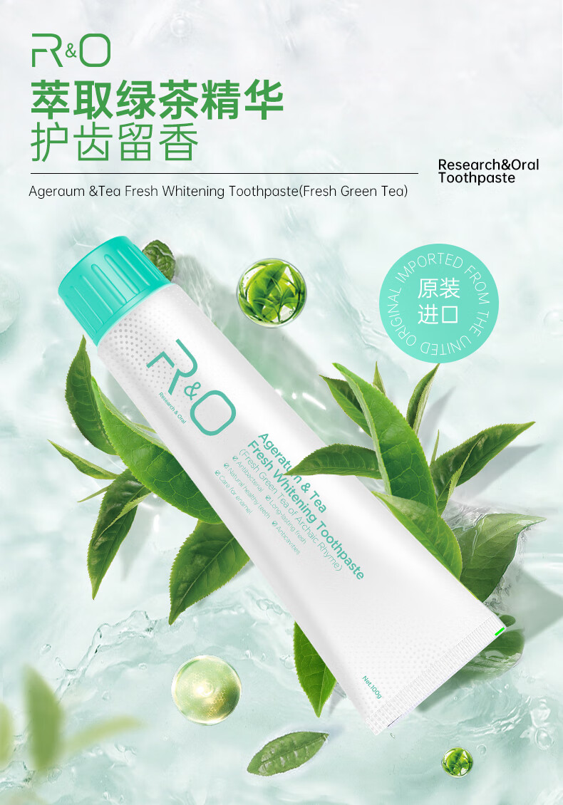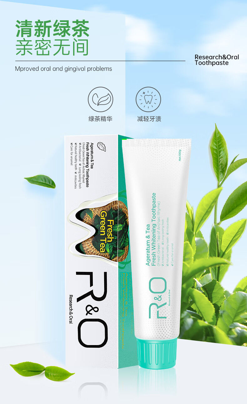 R&O 绿茶清新牙膏100g 防蛀黄牙去渍呵护牙龈清火