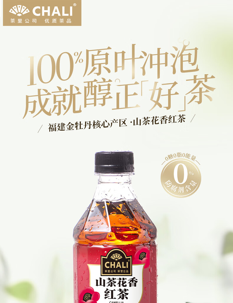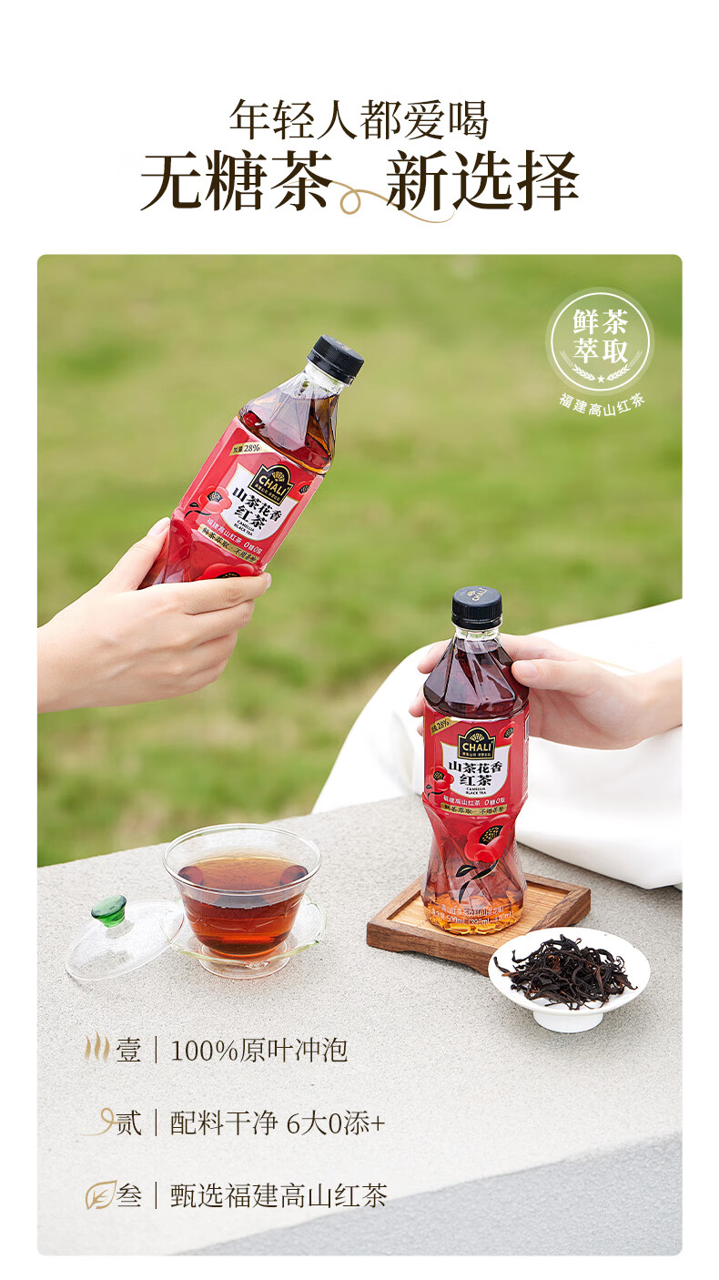 茶里 茶饮料山茶花红茶无糖茶500ml*15瓶整箱装
