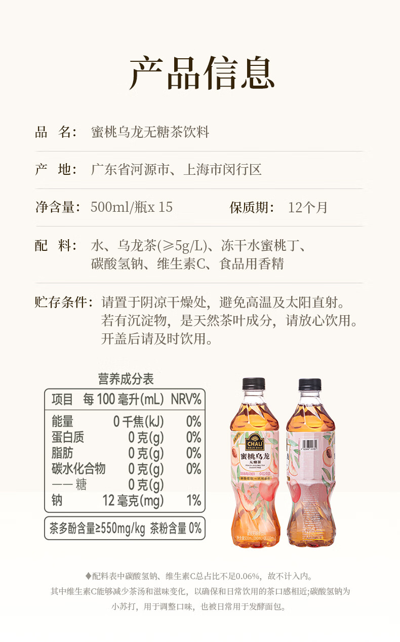 型号:蜜桃乌龙茶500ml