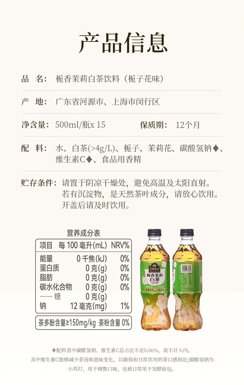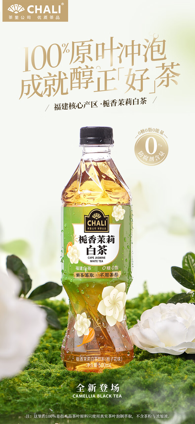 茶里 茶饮料栀香茉莉白茶500ml15瓶整箱装