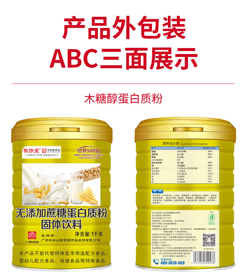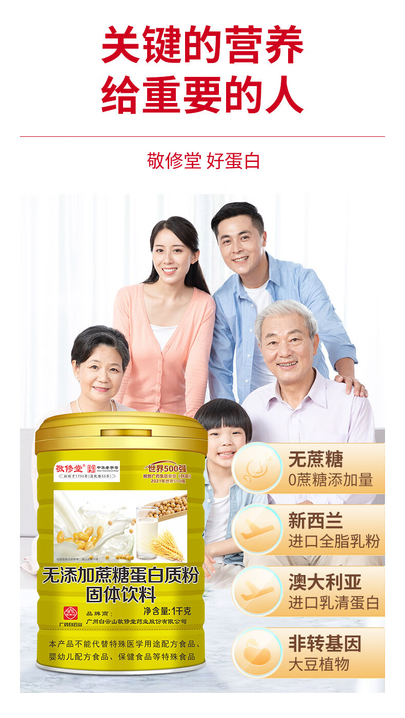 敬修堂 无添加蔗糖蛋白质粉1000g