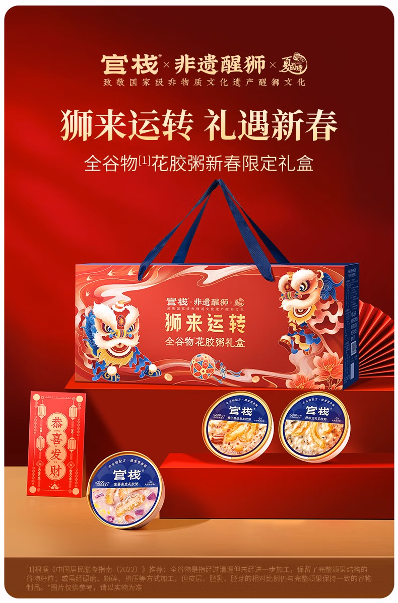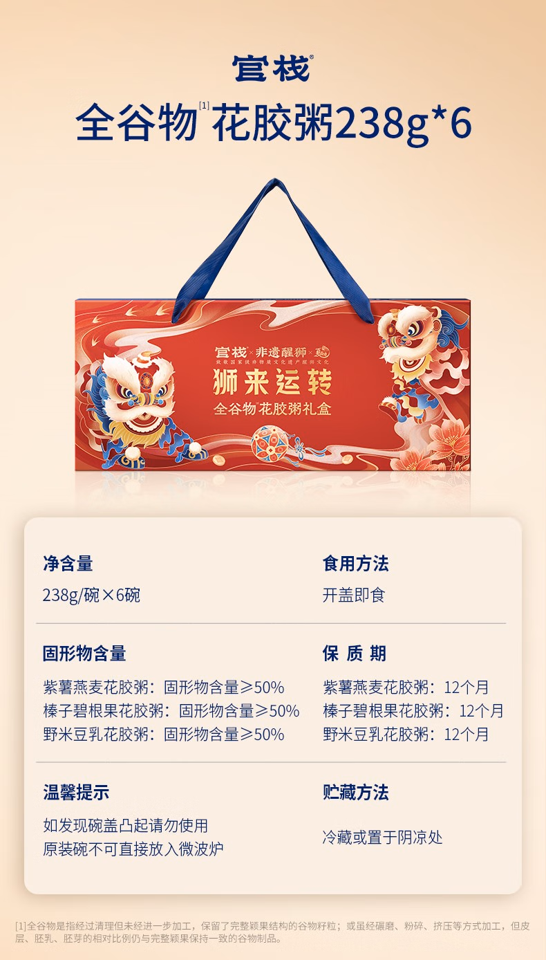 官栈 醒狮·狮来运转营养全谷物花胶粥238g*6礼盒